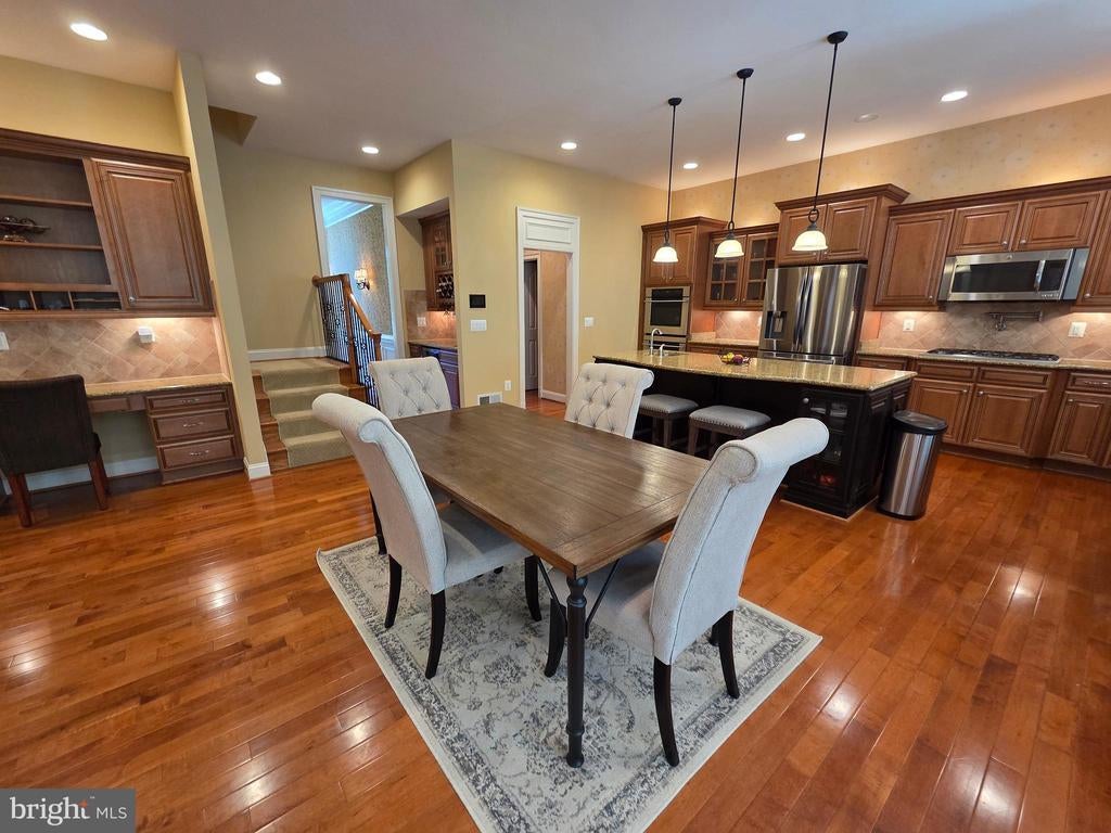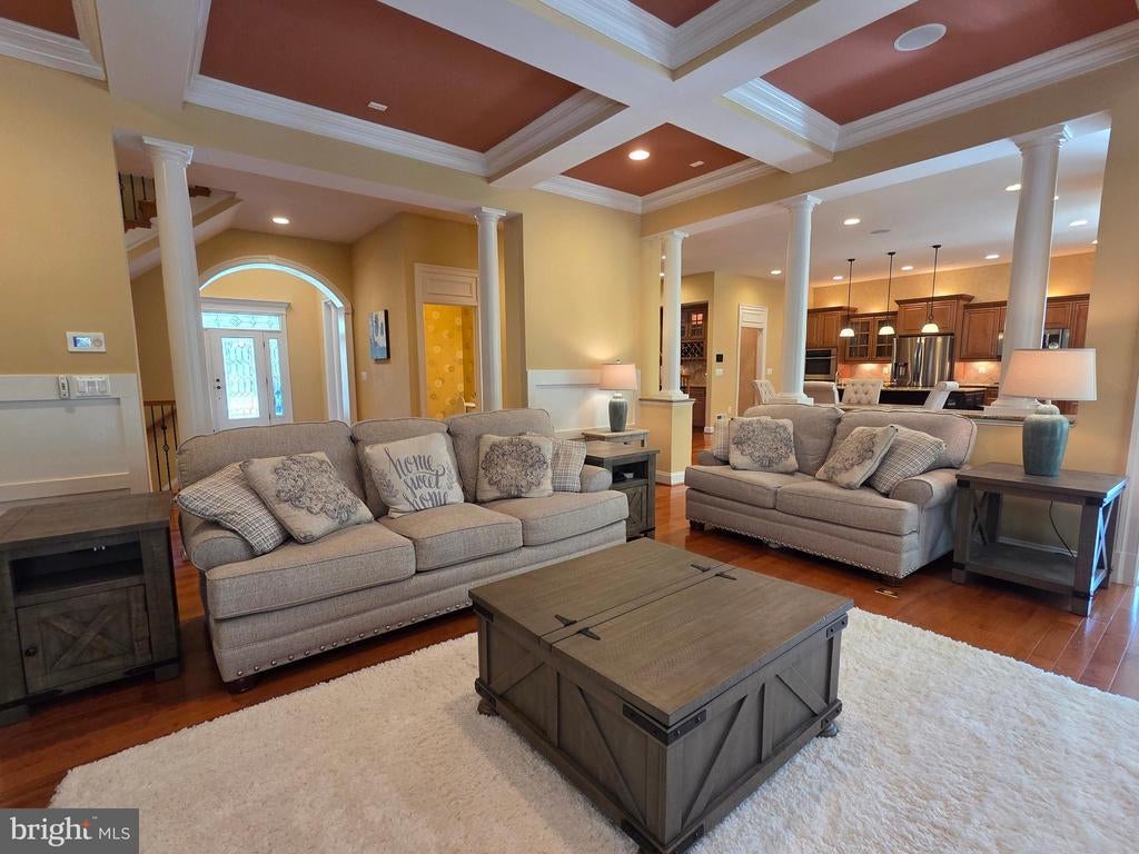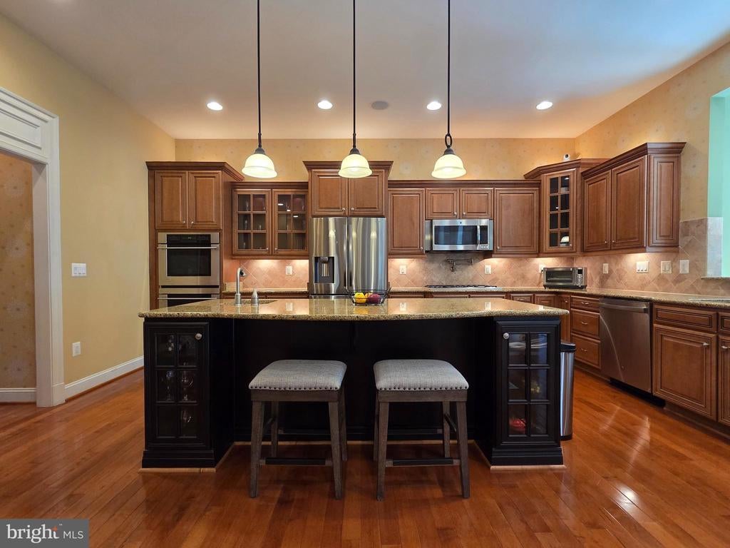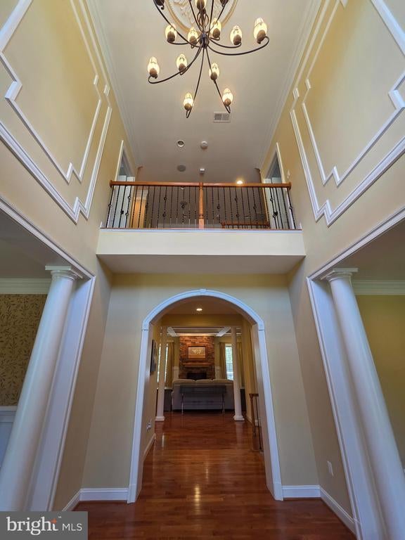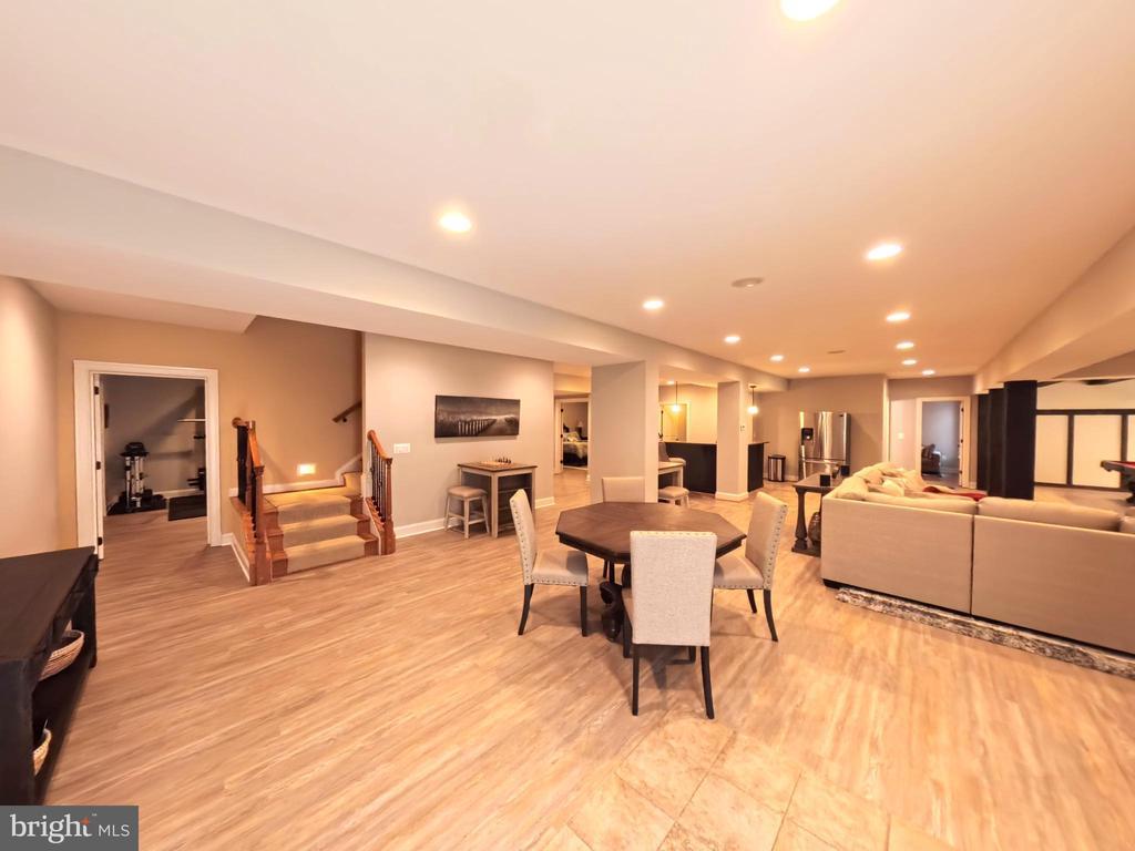 Welcome to 2 Snapdragon Drive, Stafford, VA A GORGEOUS LUXURY ESTATE with over 8,000 square feet of extraordinary living space on more than 3 private acres! This multi year award winning model home is fully loaded with upgrades and high end finishes throughout. Situated on a beautifully landscaped corner lot backing to trees, this property exudes elegance and craftsmanship from every angle. From the moment you arrive, the extended driveway and three car side load garage set the stage for what’s inside. Step through the front door into a grand two-story foyer, highlighted by hardwood floors throughout the main and upper levels, arched doorways, and decorative columns that seamlessly connect the open concept living spaces. The formal living room features a double-sided fireplace that opens into an enormous conservatory, a bright, versatile space perfect for a sunroom, music room, or home office. Custom trim and trellis ceiling details add architectural beauty and sophistication. Through French doors, a private home office awaits, complete with floor to ceiling built-in bookcases and a bay window offering peaceful natural light ideal for working from home. The spacious family room is a showstopper, featuring a stone fireplace, mantle, and board and batten detailing, all flowing into the heart of the home: the ENORMOUS gourmet kitchen. This chef’s dream kitchen includes: High-end stainless steel appliances, including double convection ovens, 5 burner gas cooktop with pot filler, built-in microwave, and a new French door refrigerator with an external refrigerated drawer Granite countertops, oversized island with prep sink, and custom soft close cabinetry Under and over cabinet lighting, tile backsplash, and butler’s pantry with wine rack, sink, and additional storage Walk-in pantry, mudroom with built-ins, and a mail center for organization Adjacent morning/sunroom leading to a large vinyl deck, perfect for entertaining or relaxing outdoors Upstairs, the luxurious primary suite features a sitting room, double-sided fireplace, and recessed lighting. The spa like primary bath includes: Deep soaking tub Dual vanities and separate sinks Two custom-tiled showers Access to an expansive dressing room/walk-in closet with built-in storage, a folding island, and natural light Conveniently connected to the primary suite is an oversized laundry room with built-ins, tile flooring, and pocket doors. Each additional bedroom upstairs is a private suite, complete with its own full bath, ceramic tile, and walk-in closets. Ample linen storage adds to the home’s functionality. The fully finished walk-out lower level offers brand new luxury vinyl flooring and abundant space for entertaining. Enjoy a large recreation room with bar area (granite counters, dishwasher, mini-fridge), game area, exercise room, and theater room for movie nights. A bonus room (Bedroom 6 NTC) provides flexibility for a guest room or additional office. Step outside to the stone patio with built-in grill center, surrounded by mature trees, river rock landscaping, and a charming walk-over bridge your own private backyard retreat! Additional Features Include: Extensive crown and trim work throughout All bedrooms with en-suite baths Underground sprinkler system Two tankless water heaters HVAC systems with humidifier, dehumidifier, and whole-house air scrubber Central vacuum system Prime Location — Conveniently located near top-rated schools, shopping, dining, I-95, Curtis Park, Golf Course, Country Club and Hartwood Winery.