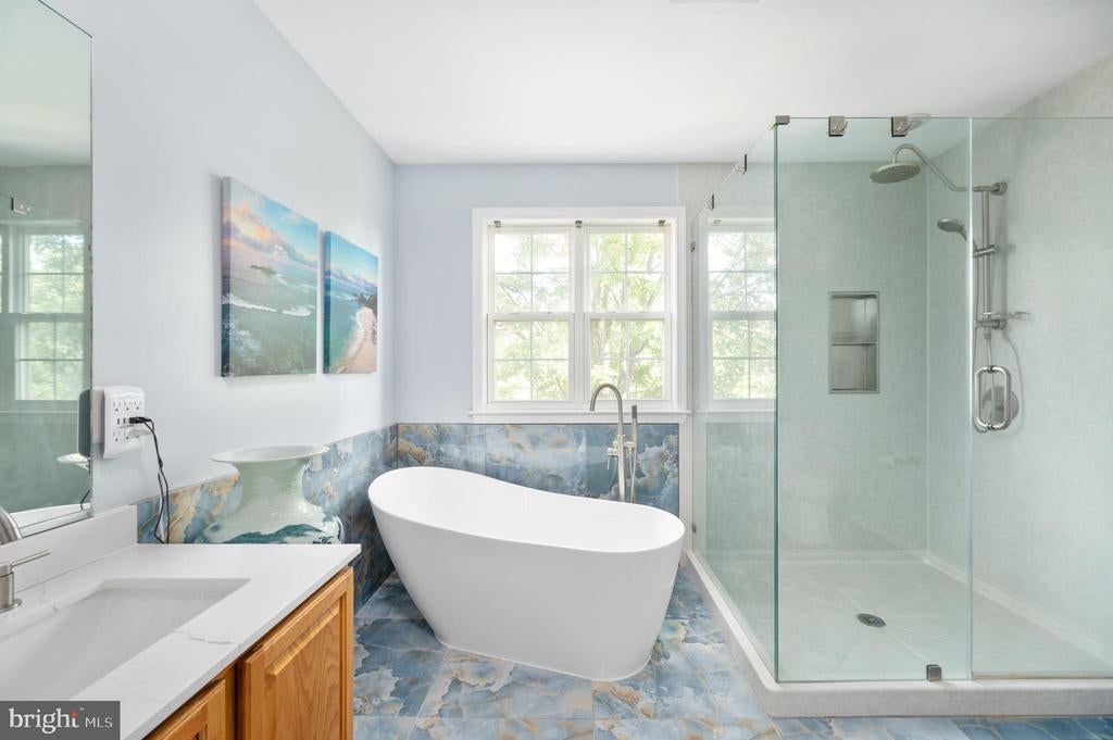 Welcome to this stunning home in the highly sought-after Austin Ridge subdivision, perfectly situated on a cul-de-sac. This property boasts fantastic curb appeal with a welcoming covered front porch and a new roof installed in 2024. Inside, you'll find a freshly painted, neutral interior and newer carpet on the upper level and dining room. The kitchen is a chef's delight, featuring newer stainless steel appliances, granite countertops, and a convenient island. It opens to a cozy family room with a gas fireplace and has direct access to the rear deck, perfect for indoor-outdoor living. The upper level offers five spacious bedrooms and two full bathrooms. The spacious primary bedroom is a true retreat, complete with two walk-in closets and a beautifully remodeled ensuite bathroom. This luxurious space includes a double vanity, a separate soaking tub, a walk-in shower, and radiant floor heating for ultimate comfort. The finished, walk-out basement provides even more flexible living space. It includes a full bathroom, two storage rooms, 6th bedroom with a walk-in closet, and a recreation room with a sliding door that leads out to the backyard. Don’t miss the murphy bed located in the rec room! The outdoor space is just as impressive. Enjoy a level, fenced backyard, a deck with a built-in covered pergola, a storage shed, and an irrigation system to keep your lawn looking pristine. A two-car garage completes this exceptional home. Commuting is a breeze from this location, with easy access to I-95. The property is less than 5 miles from two commuter lot options as well as the Brooke VRE Station. This home is a perfect blend of comfort, style, and practicality. Don't miss your chance to see it!