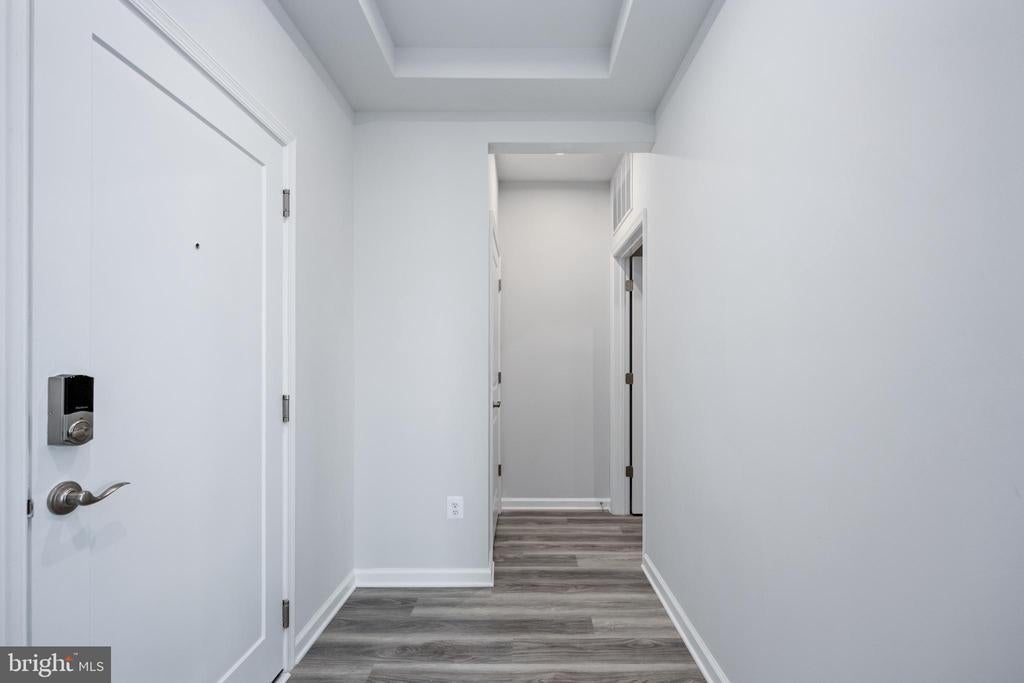 Step into refined, single-level living with this exceptional condo in the sought-after Embrey Mill community. Located in a private, secure building with smart video intercom access and individual unit entries, this home offers the perfect blend of comfort, style, and modern convenience. Enjoy the ease of private garages, driveways, and elevator access, along with well-lit storage spaces. Inside, a grand foyer with tray ceiling leads to an open-concept living area featuring a sun-filled family room, high ceilings, and a private balcony. The gourmet kitchen is a chef’s dream, complete with Whirlpool stainless steel appliances, granite countertops, designer tile backsplash, oversized island, walk-in pantry, and smart pull-out shelving. The luxurious primary suite includes a massive walk-in closet and private balcony with hose bib, ideal for potted plants or personal gardening. The spa-inspired primary bath features a double vanity, ceramic tile, and a frameless glass shower. A spacious secondary bedroom, pocket office, large laundry room, and luxury vinyl plank flooring throughout complete this thoughtfully designed home. This is elevated condo living at its finest. Enjoy peace of mind with fire suppression systems, and experience seamless living with integrated DreeSmart technology. Embrey Mill offers resort-style amenities, including a clubhouse, fitness center, yoga studio, pickleball courts, fire pits, outdoor games, and an on-site activities director—all just minutes from I-95, Route 1, top shopping, dining, and the new Publix.