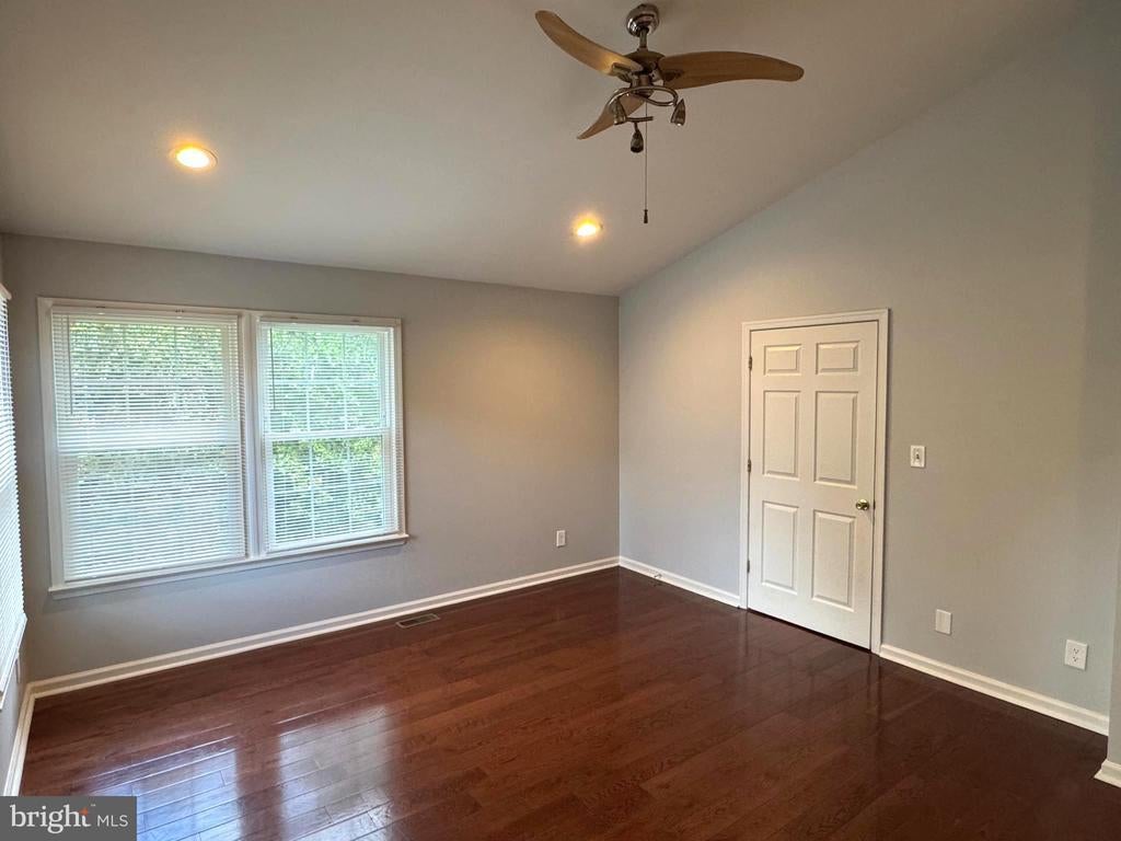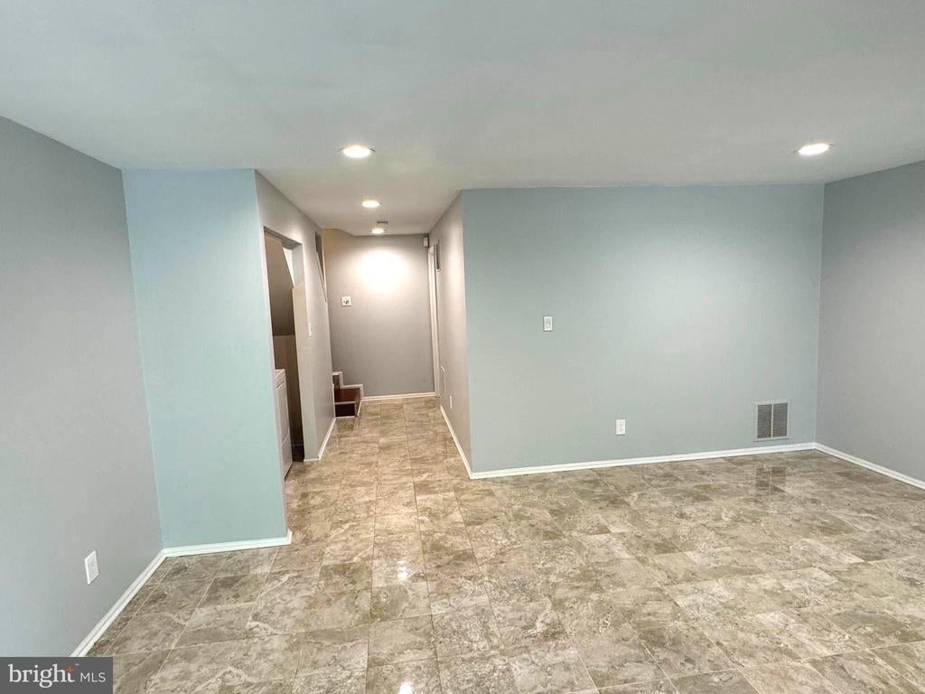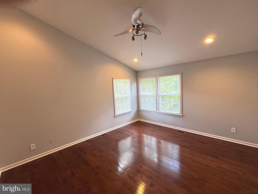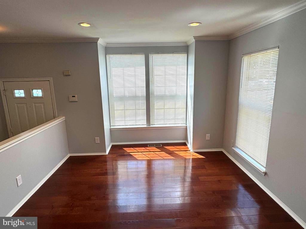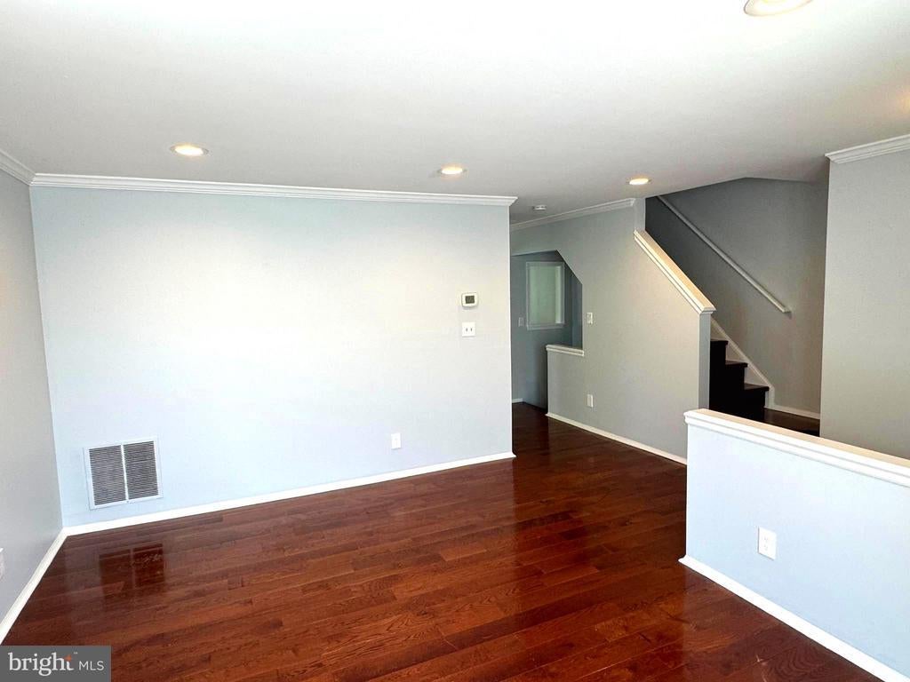 Welcome to this stunning 3 bedroom, 2.5 bath end-unit townhome featuring modern updates and plenty of space for comfortable living. Step inside to find gleaming hardwood floors flowing throughout the main and upper levels, complemented by recessed lighting that adds a warm, contemporary touch. The kitchen boasts granite countertops, stainless steel appliances, and a cozy breakfast nook, perfect for morning coffee. A separate dining area makes entertaining easy and enjoyable. The finished basement offers versatility with elegant porcelain tile flooring, a fireplace, and direct access to a large fenced in backyard overlooking wooded trees, ideal for gatherings, pets, and outdoor relaxation. Additional features include 2 assigned parking spaces and a convenient location just minutes from I-95, shopping, dining, and major retailers including Home Depot, Lowe's, Ross, and more. This home combines style, comfort, and convenience-schedule your showing today!