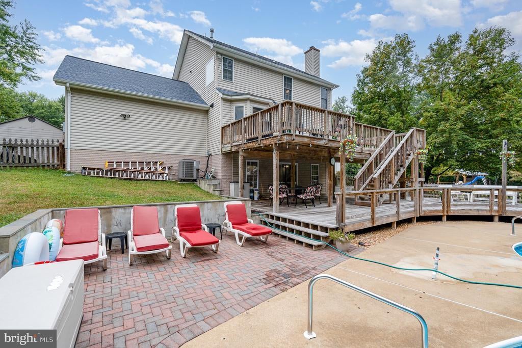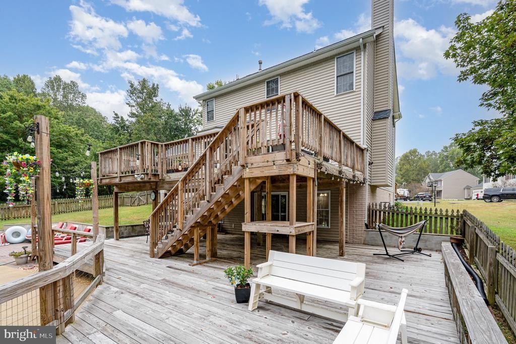 Seller’s Loss, Your Gain! The sellers have lovingly updated this beautiful home in a very short period, but a new job is calling them away—giving you the perfect opportunity to move right in! Located on a quiet cul-de-sac lot in Stafford County, this spacious home is full of upgrades and ready for i's next owners. Main level highlights, featuring all wood flooring, open-concept kitchen with quartz countertops, stainless steel appliances, to include a brand new fridge, with ice-maker, gas cooktop, electric WiFi-enabled oven, pot filler, and a stylish bar area in the dining room. Family room with a cozy wood-burning fireplace just off the kitchen. Formal living room currently dedicated as a home office—ideal for remote work. Upstairs features include new wood flooring, primary suite with a fully renovated en-suite bath featuring a walk-in shower, standalone soaking tub, dual vanities, and a custom walk-in closet with built-ins. Two additional bedrooms, a full bath, and a laundry room. Fully finished basement includes new flooring, 4th bedroom, renovated full bath, spacious rec room, and a 2nd kitchenette—great for guests or multi-generational living. 2-story deck overlooking the in-ground pool, 2 sheds, your own oasis, right in your backyard! Additional features: New interior paint through out, New kitchen refrigerator & flooring, Roof (2021), HVAC & furnace (2021), Hot water heater (2015), Pool liner (2022), Pool pump (2023). Great convenient location—just minutes from VRE, downtown Fredericksburg, Dahlgren, and I-95.