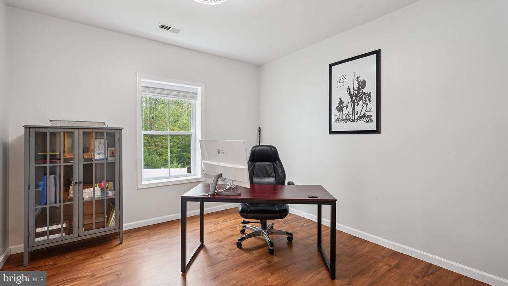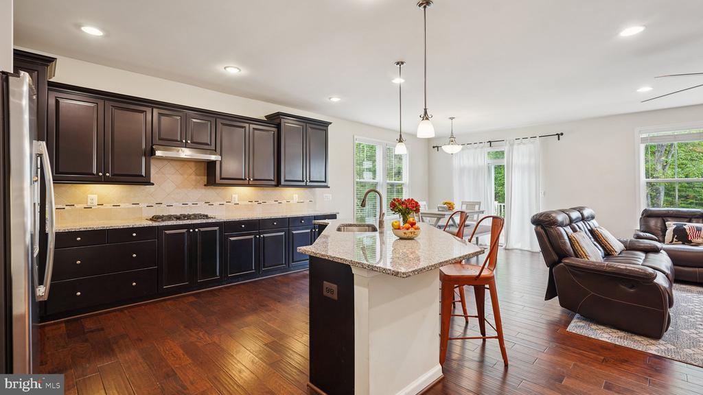 Welcome to your dream home in amenity-rich Embrey Mill. This beautifully maintained residence offers 5 bedrooms, 5 full baths, and over 4,500 finished square feet of stylish living across three fully finished levels, including a two-car front-loading garage. Situated on a rare private lot backing to serene wooded views, this home blends comfort, convenience, and luxury in one of North Stafford’s most desirable communities. From the inviting covered front porch, you are welcomed into a home designed for modern living. Inside, the main level boasts expansive engineered hardwood floors that add a touch of sophistication throughout. The flexible office or sitting room offers a versatile space to suit your needs—whether it's work or relaxation. The bright formal dining room, adorned with crown and chair molding, is perfect for hosting memorable dinners. The gourmet kitchen is truly a chef’s dream! With a butler’s pantry, granite counters, custom cabinetry with glass accents, and a chic stiletto-accented backsplash, this kitchen is as stylish as it is functional. The wall oven, gas cooktop, and large island with seating invite everything from cozy morning coffee to unforgettable dinner parties. The spacious eat-in area provides a casual spot for morning coffee or family breakfasts. Plus, enjoy easy access to the back composite deck, perfect for grilling and outdoor dining! This is an ideal setting for relaxing after a long day or hosting weekend cookouts while taking in the peaceful wooded views. The kitchen seamlessly flows into the open family room, and with its cozy gas fireplace, it makes entertaining a joy, creating a warm and welcoming ambiance. This level also includes a convenient main-level bedroom with a full bath, ideal for guests or anyone seeking easy accessibility. The practical mudroom combines style and function, with a coat closet and custom-built-in storage that keeps outerwear and shoes neatly organized. Beautiful wood steps lead to the upper level, where a versatile loft awaits—perfect for a playroom, office, or gaming area. From there, you’ll indulge in the spacious primary suite, featuring a tray ceiling, TWO walk-in closets, and a spa-inspired bath complete with a soaking tub, dual vanity, tiled shower, and private water closet. Three additional bedrooms elevate the upper level, including one with its own private en-suite bath and walk-in closet. Two more bedrooms are thoughtfully connected by a Jack-and-Jill bath featuring a dual vanity and a separate water closet. An upper-level laundry is perfect for everyday convenience. The walk-out lower level offers a spacious recreation room, full bath, and an additional room ideal for a sixth bedroom, office, or craft room. An adjacent large storage closet could easily be converted into a bedroom closet if desired. The unfinished portion of the basement also includes added shelving, providing even more convenient storage space. From this level, you can step outside to a patio that extends your outdoor living space and connects seamlessly to the backyard. The fully fenced yard with vinyl fencing, irrigation system, and storage shed combines convenience with charm. Additional highlights include a dual HVAC system (with one unit replaced in 2025) and a security alarm system for added peace of mind. Community amenities span 285 acres of open space, two pools, a community center, Grounds Bistro & Café, a dog park, multiple jogging/biking trails, playgrounds, an amphitheater, a community garden, and more! The Jeff Rouse Sports Center, with gym membership and indoor pools, is also just minutes away. Unbeatable location—walk to the community pool, café, and Publix at Embrey Mill Town Center. Minutes to I-95 express lanes, commuter lots, Stafford Hospital, restaurants, and shopping. Easy commute to Quantico and the FBI Academy. Don’t miss the 3D Matterport tour and this rare opportunity to own a spacious, upgraded home in sought-after Embrey Mill!