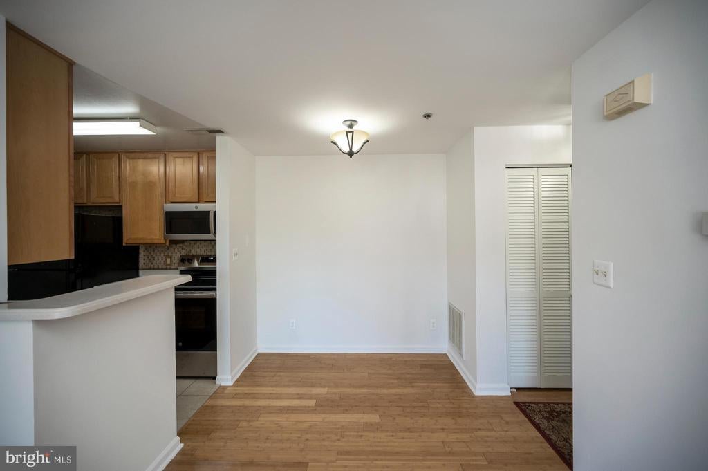 Beautiful remodeled condo featuring 1 bedroom with den/office. Newer bamboo flooring throughout. Fresh paint throughout. New faucet and sprayer in kitchen with a double sink. Tile backsplash in kitchen. New stove and microwave. One full bath with tile flooring. Deck/balcony overlooking common area. Primary bedroom features a double closet. Community includes pool, clubhouse and gym. Close to schools, shopping, restaurants, I95 and commuter services. Closet to second bedroom is in the hall directly outside the bedroom.