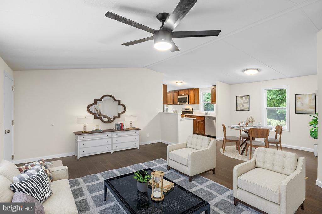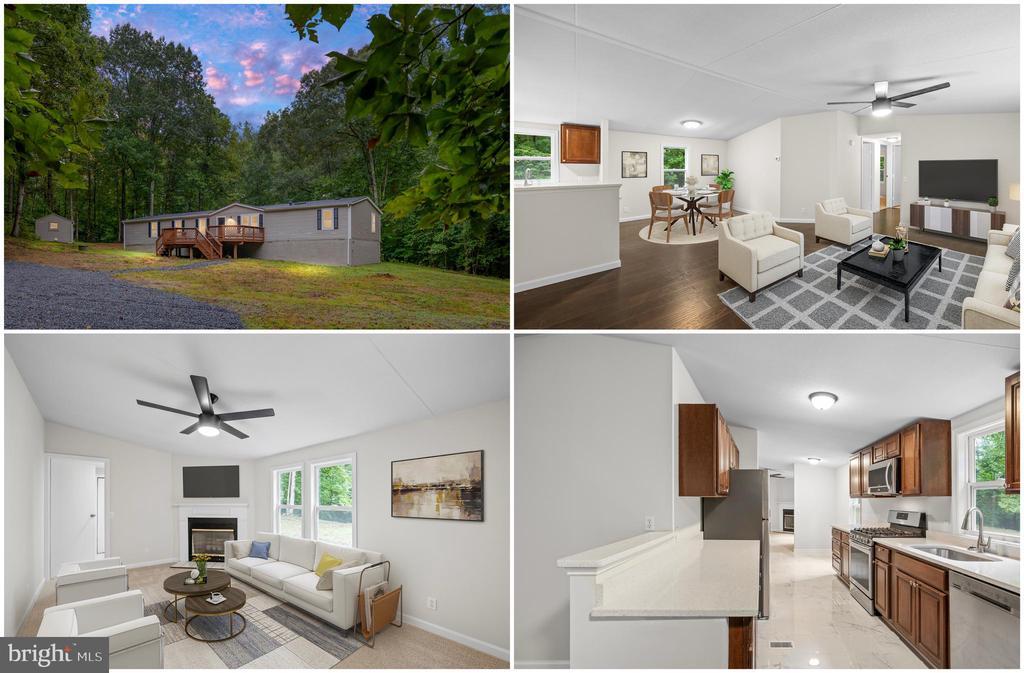 NESTLED IN THE EDGE HILL COMMUNITY IN STAFFORD, THIS CHARMING DOUBLE-WIDE MANUFACTURED HOME OFFERS A PERFECT BLEND OF COMFORT AND MODERN LIVING. WITH THREE SPACIOUS BEDROOMS AND TWO FULL BATHROOMS, INCLUDING A LUXURIOUS PRIMARY BATH WITH UPGRADED COUNTERTOPS AND A WALK-IN SHOWER, THIS HOME IS DESIGNED FOR RELAXATION. THE OPEN FLOOR PLAN SEAMLESSLY CONNECTS THE FAMILY ROOM, ADORNED WITH A COZY CORNER FIREPLACE, TO THE KITCHEN AND DINING AREA, CREATING AN INVITING SPACE FOR GATHERINGS. THE WELL-APPOINTED KITCHEN FEATURES QUARTZ COUNTERTOPS AND STAINLESS STEEL APPLIANCES, INCLUDING A GAS RANGE AND BUILT-IN MICROWAVE, MAKING MEAL PREP A DELIGHT. ENJOY THE TRANQUILITY OF A PRIVATE, SECLUDED LOT SPANNING 1.34 ACRES, BACKING TO LUSH TREES, PERFECT FOR OUTDOOR ACTIVITIES OR A PEACEFUL RETREAT. A SPACIOUS DECK INVITES YOU TO SAVOR MORNING COFFEE OR EVENING SUNSETS. WITH A MAJOR RENOVATION DONE IN 2025, THIS HOME HAS EVEN GREATER VALUE FOR YOU. CONVENIENTLY LOCATED NEAR LOCAL AMENITIES AND MCB QUANTICO, THIS PROPERTY IS A TRUE GEM WAITING TO BE CHERISHED.