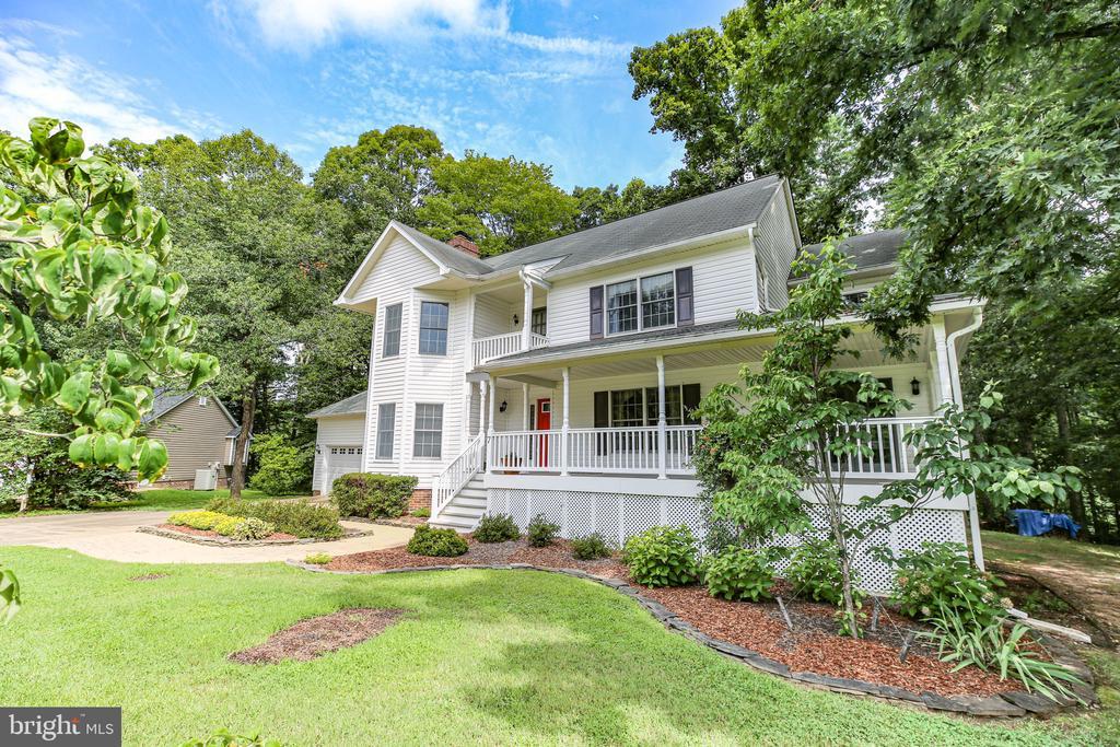 Welcome to this picturesque, established neighborhood filled with beautifully built custom homes on large, lush lots—with no HOA! Over one acre to do with what you wish. As you enter the community, you’re greeted by a sense of space, maturity, and privacy. Nestled quietly at the end of a cul-de-sac, this home offers exceptional tranquility and seclusion. The house is strikingly handsome and inviting. Step inside to a welcoming main level featuring gorgeous hardwood flooring throughout and generous living spaces. The formal dining room includes double French doors that open to an extra-large wrap front porch—perfect for entertaining. The updated kitchen offers Corian countertops, a double sink, stainless steel stove and microwave, double oven, maple cabinetry, pantry, and a light-filled eat-in area. The spacious family room features a wood-burning fireplace and sliding glass doors leading to a fully enclosed porch with access to the back deck. A thoughtfully designed floorplan and quality finishes throughout the main level create a warm and inviting atmosphere. Upstairs, the expansive primary suite boasts a three-bay window, walk-in wardrobe, double vanity, and an updated shower/tub combo. Two additional bedrooms, each with classic wood doors and charming details, share an updated full hall bath with a skylight. The fully finished lower level offers incredible flexibility with a massive rec room featuring a floor-to-ceiling brick wood-burning fireplace and mantel, a fourth bedroom with a closet, window, and direct exterior access—ideal for guests or in-laws. You’ll also find a dedicated laundry room with a window and built-in storage, an updated full bathroom, and an additional flex room that could serve as a home office, hobby space, or workout area. Step outside to enjoy the many outdoor living spaces. The oversized front porch is truly the size of an additional room—large enough for a full dining table or lounge setup..Off the family room a large and very tall screened porch with access to the house and large trex deck that backs to trees for complete privacy, and a handy storage shed. The extra-large two-car garage offers ample storage and workspace. This home offers the perfect blend of space, privacy, and character—just minutes from downtown Fredericksburg, major commuting routes, schools, and parks. A rare opportunity in a no-HOA neighborhood! Extra nice neighborhood, extra nice house!