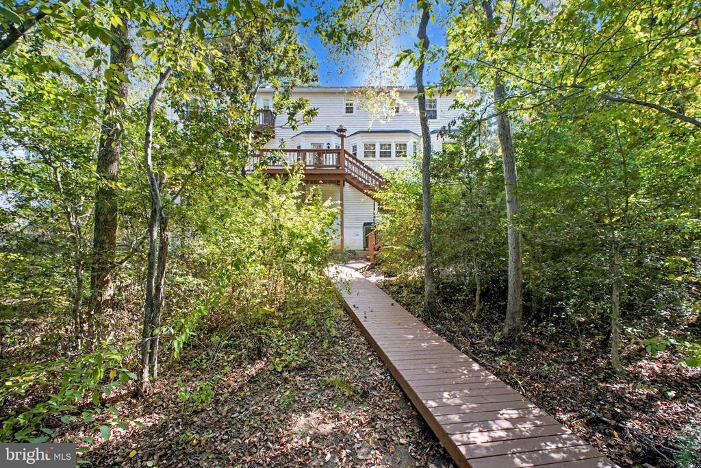 Welcome to 1408 Washington Drive, Aquia Harbour – Navigable Waterfront Colonial with Private Dock Move-in ready three-level colonial featuring 5 bedrooms, 3.5 baths, and deep-water access. Main Level: Hardwood floors, fresh paint, living and dining rooms with French doors and bay window, family room with wood-burning fireplace, and a gourmet kitchen(2017) with granite counters, stainless steel appliances, 42" cabinets, and double-door pantry. The breakfast room provides access to the rear deck and garage. Powder room on main level. Upper Level: Spacious Primary suite with sitting room, skylight, private balcony, two walk-in closets, and renovated primary bath(2018) with freestanding tub, tiled shower, dual sinks, and skylight. Three additional bedrooms, hall bath with tub/shower, and laundry room with front-load washer and dryer complete the upper level. Lower Level: Fully finished walkout basement with recreation room, office with built-ins and pocket doors, craft/game room, and fifth bedroom with full bath. Exterior: Covered front porch, multi-tiered deck (recently cleaned and sealed), backyard with direct water views, raised walkway and private dock with deep-water access. Trane Heat Pump-2013; Water Heater-2015; Roof with 50 YR Architectural Shingles-2015; Oversized Gutters w/Gutter Guard System-2019. Community: Highly sought-after location just a few yards from the marina and Harbour Inn pool—perfect location for community events like the annual Independence Day celebration and fireworks. Aquia Harbour amenities include two pools, a state-certified police and fire department, marina with boat ramp and fishing pier, kayak/canoe launches, golf course with pro shop, horse stables, riding trails, tennis and basketball courts, dog park, storage lot, community garden, preschool, and multiple parks and playgrounds. Nature lovers will enjoy the scenic surroundings filled with deer, foxes, and bald eagles overhead.