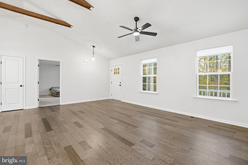 Nestled on a sprawling and private 5.26-acre lot, this lovely ranch home with its cozy front porch embodies the perfect blend of style and comfort. Larger than it appears, with a total of almost 3000 sq ft, and built in 2024, this residence is BETTER THAN NEW! It showcases modern craftsmanship and thoughtful design. You are so close to all amenities—including the VRE (train) railway system—yet the feel of this area is one of complete quiet and serenity. MAIN LEVEL: Enter the home and appreciate the feeling of expansiveness, owing to the vaulted ceilings and hardwood flooring that flows throughout the Main Level. Welcome to the heart of the home, featuring a stunning Kitchen equipped with upgraded granite countertops, a spacious island, oversized farmhouse sink, and high-end stainless- steel appliances, including a built-in microwave, dishwasher, and electric oven/range. The Kitchen opens directly into the Living and Dining areas, which are spacious and inviting. Never miss a beat while you’re preparing dinner, entertaining, or supervising homework! The Main Level boasts 3 Bedrooms with a split-Bedroom floor plan for privacy. The convenient entry-level Primary Bedroom ensures ample space for relaxation, and the En-Suite Primary Bath is a true retreat. A beautifully tiled, walk- in shower with glass door, a vanity with dual sinks, and luxe stand- alone vessel soaking tub are features of this Bath that you will enjoy daily. A convenient Laundry Room is located near the Primary Bedroom and boasts a high-end washer and dryer which are included in the sale. LOWER LEVEL: The thoughtfully designed Lower Level features a layout ensuring natural light from windows and the walk-out sliding glass door. One legal Bedroom with egress, and an additional Bedroom/Den (ntc) exist here, along with 3rd Full Bath. This level offers endless possibilities, whether you envision a home gym, entertainment area, or additional storage. EXTERIOR: Outside, the property backs to trees and is partly wooded, creating a serene and private retreat where you can unwind and connect with nature. Zoned A1, can enjoy raising chickens, goats, bees, and more! The home is situated in a peaceful setting that feels miles away from the hustle and bustle, yet remains accessible to local amenities. The sellers say it feels “magical here, like a private oasis.” This home is not just a residence; it's a lifestyle choice that promises comfort, style, and a sense of belonging. Experience the tranquility and luxury that await in this exceptional property, where every detail has been meticulously crafted for your enjoyment. LOCATION: Located minutes from Leeland Station VRE (train, and several I95 entrances, this area is a commuter’s dream! Close to Quantico MCB and the FBI, Mary Washington University, MW Hospital, Historic Downtown Fredericksburg, Butler Road YMCA/Fitness & Swim Park, as well as the area’s finest restaurants and shopping, 700 Leeland Road is an amazing location! Make sure to book your showings soon—Don’t miss out on this lovely, immaculate home!!