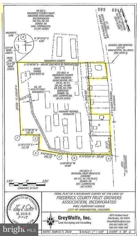 Unprecedented Development Opportunity, City of Winchester, 10.34 acres plus 3 SFH fronting Fairmont Ave (additional 1.09 acres). Gateway to downtown Old Town Winchester. Prime location for high density multifamily and mixed use commercial. Public utilities to site. Truly a catalyst development opportunity, located in the fast growing metropolitan area in Virginia. Voted #1 Main Street and Places to Retire. Also available, 27.20 acre parcel in County, immediately adjacent, also planned for high density development. MLS# VAWI2007698 Summary: OFFERING #1: CITY PARCELS (4) ZONING: Neighborhood Design District, 50 UNITS PER ACRE 801 Fairmont - 10.34 ACRES with 1400 SF office, multiple outbuildings 871 Fairmont - .17 acres with 1x 3/1 SFH 867 Fairmont - .50 acres 720 SF office 893 Fairmont - .42 acres with 1x 4/1 SFH and 2 small tenant cottages $4,500,000.00 TOTAL OFFERING #2: COUNTY PARCEL (1) ZONING: Urban Development, 20 UNITS PER ACRE 27.2 ACRES $4,000,000.00 TOTAL
