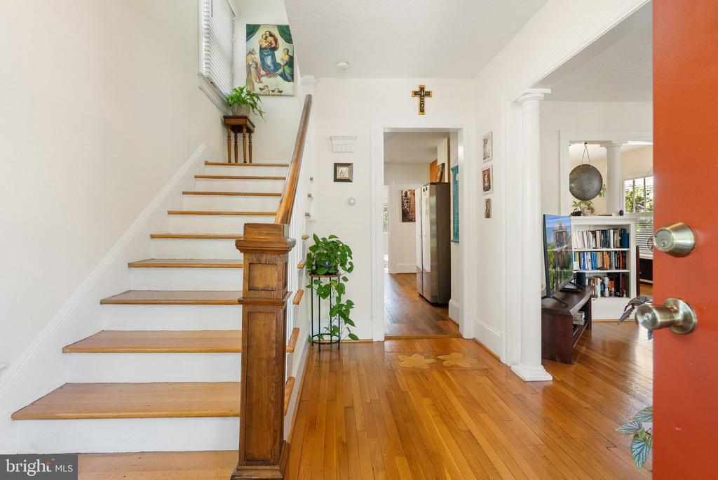 Welcome to the beautifully preserved American Foursquare where music legend Patsy Cline once lived with her mother—and later, with her husband, Charlie Dick. Built in 1931, this four-bedroom, one-and-a-half-bath home blends timeless character with thoughtful updates, all wrapped in the charm of one of Winchester’s most historic neighborhoods. Inside, you’ll find nearly 1,800 square feet of living space filled with original details, including stunning hardwood floors with an intricate decorative apple blossom inlay, classic trim, original bedroom door hardware, and the beloved three-over-one Craftsman-style sash windows. The main living areas are graced with built-in colonnades between the living and dining rooms, giving the space warmth and flow. The home has been freshly painted and features a newer roof, along with refreshed flooring in the kitchen, half bath, and butler’s pantry. The kitchen and bathrooms have been thoughtfully updated, including a charming primary bath that’s ready for everyday comfort or weekend relaxation. Even the heating system has been upgraded, with a recent conversion from oil to natural gas for better efficiency and modern living. Upstairs, you'll find a finished attic bedroom—perfect as a guest room, home office, or creative space. And when you step outside, you’re just as charmed: tucked just beyond the main home, you’ll find a charming one-bedroom, one-bath guest cottage—perfect for extended family or visiting friends. This cozy space includes a wet bar and living area, offering privacy and comfort in a picturesque backyard setting. It’s conveniently connected to a two-car carport, providing covered parking and easy access. Whether you use it as a guest retreat, studio, or home office, this cottage adds incredible flexibility and value to an already exceptional property. This truly special home isn’t just move-in ready—it’s a one-of-a-kind opportunity to own a meaningful piece of Winchester’s story. The backyard is thriving with native Virginia perennials and backs up to Town Run and Winchester’s scenic Green Circle Trail, ideal for a morning walk or afternoon bike ride. You’re also just minutes from the lively Old Town Walking Mall, where shops, cafes, and community events bring the city’s rich culture to life and the highly sought-after Shenandoah University. If you're looking for history, charm, and location, you’ll find it all right here—ready and waiting for your next chapter.