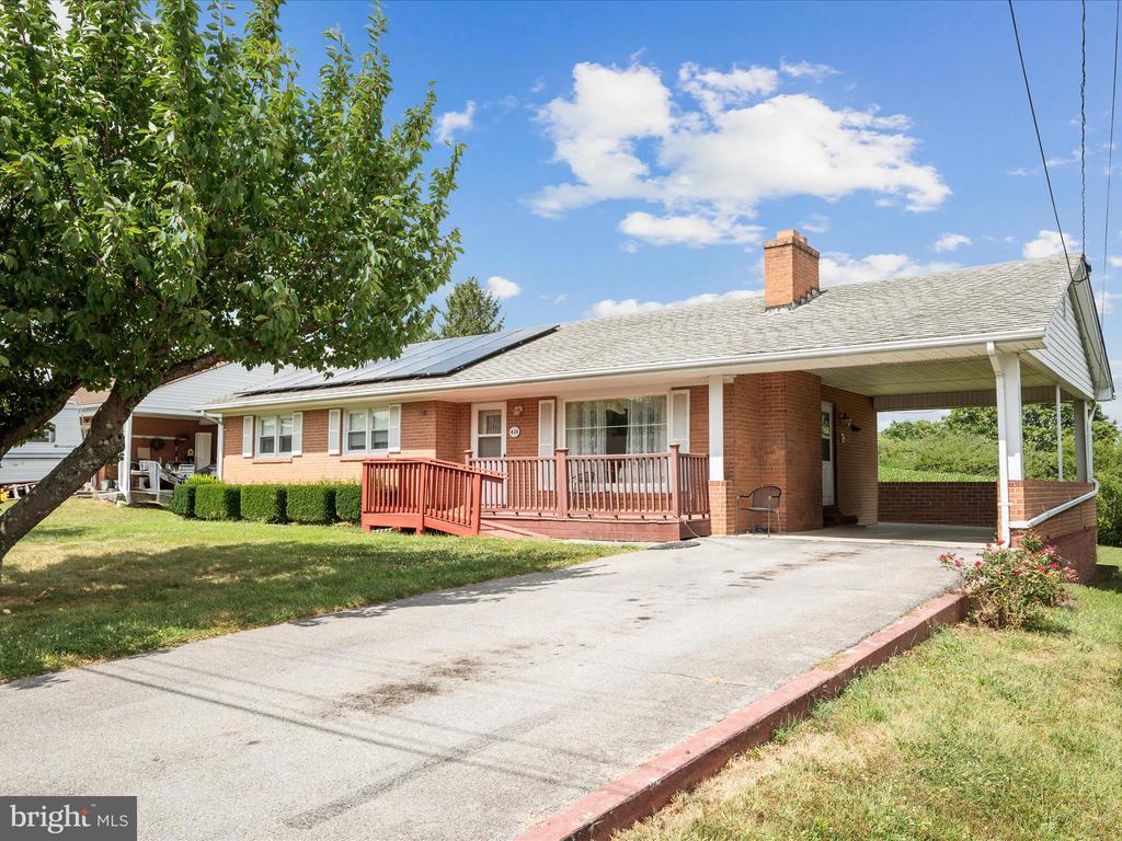 Enjoy the ease of one-level living in the heart of Winchester City thats ready for your personal touches! Ideally located just minutes from shopping, dining, and local conveniences, this charming all-brick rancher with a full walk-up basement offers both comfort and functionality. The kitchen features space for a dining table, while the inviting living room boasts a cozy fireplace with a lovely mantle. Three generously sized bedrooms share a full bath on the main level. The finished basement includes a spacious family room, laundry area, and a workshop space—perfect for hobbies or storage. Outside, enjoy a large yard, a carport, and a driveway with ample parking. Convenient to downtown Winchester, Winchester Medical Center, Shenandoah University, Route 522, and I-81. Additional Features: Solar panels (seller to pay off at closing), new refrigerator (2025; ice maker not connected), and fireplace insert conveys as is.