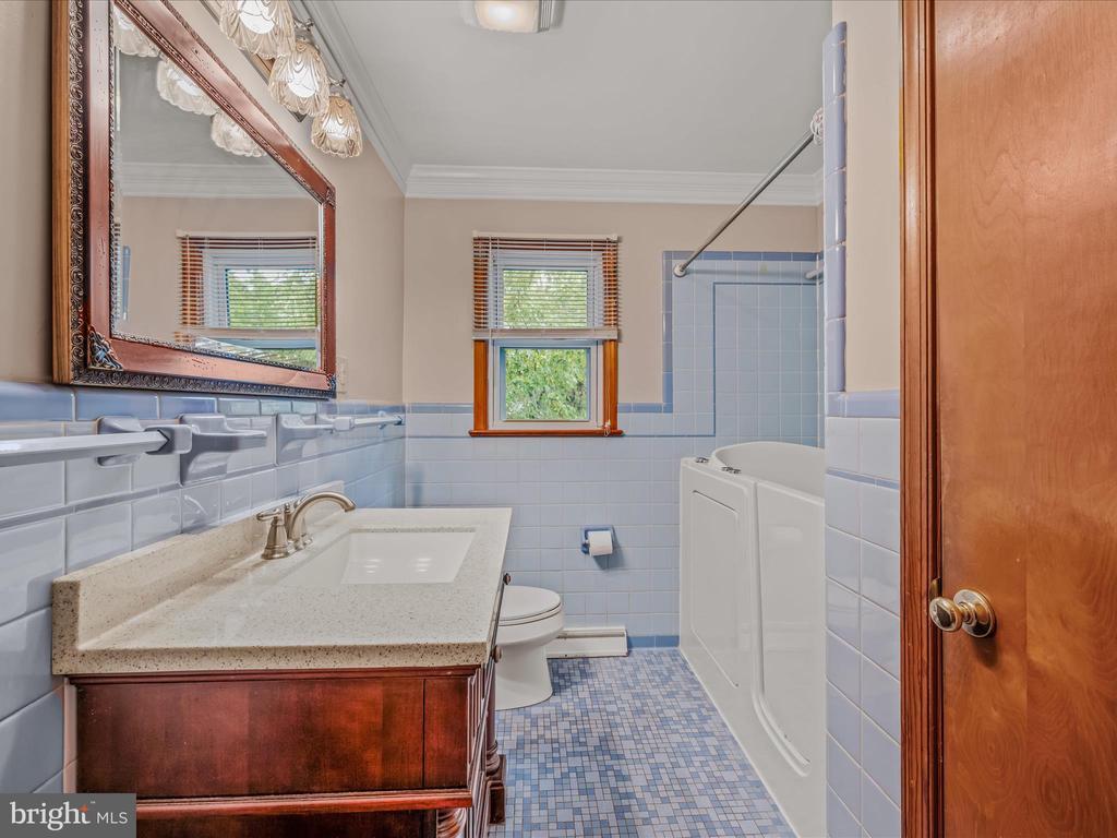Bathroom - Jetted Tub, Entry Lvl BR, Shades/Blinds, Wood Floors, CeilngFan(s), Chair Railing, Crown Molding, Upgraded Countertops