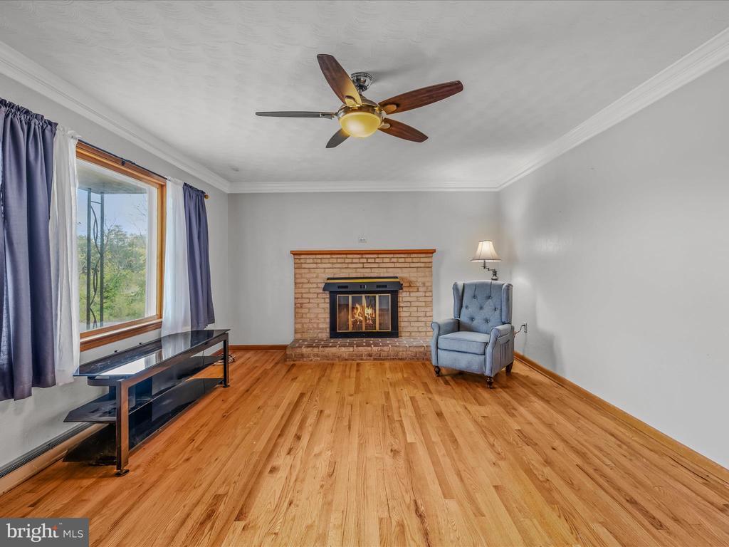 Brick, Fireplace - Glass Doors, Gas/Propane, Mantel(s)