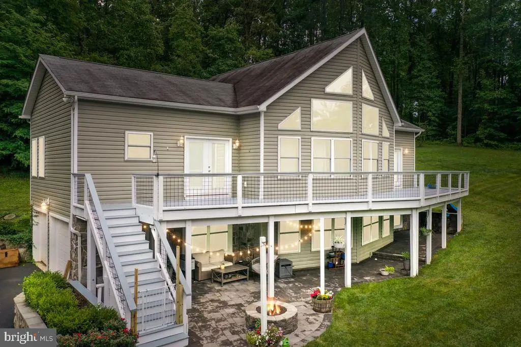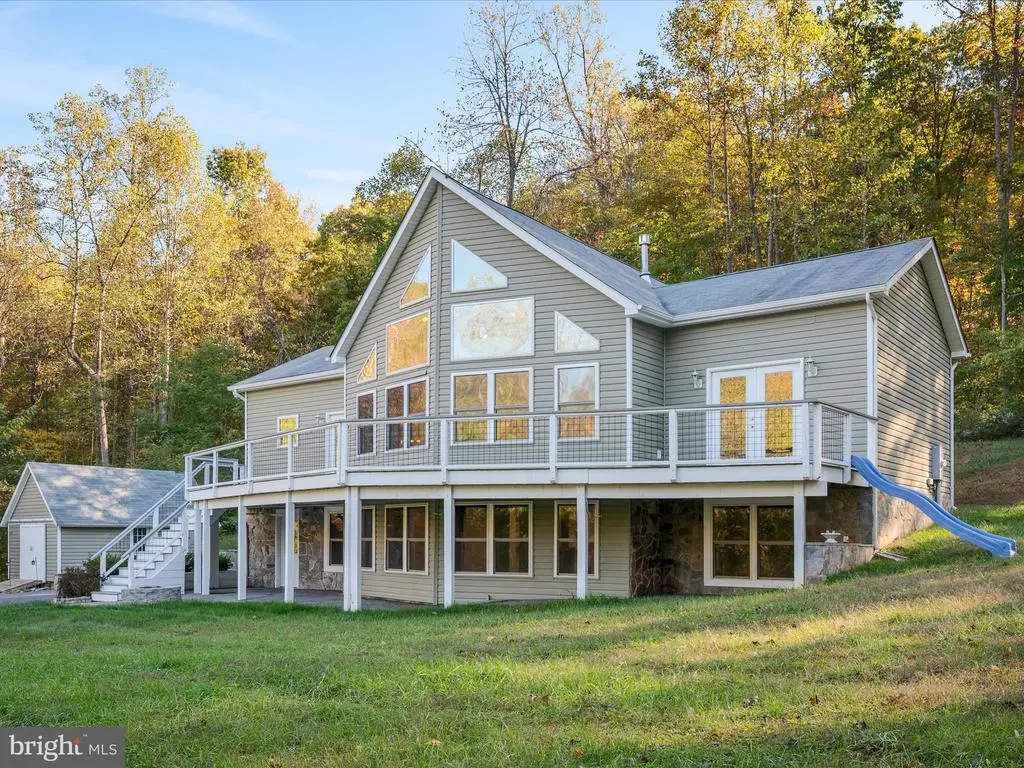 Short term rental possibilities! Priced under tax assessment. Charming, custom-built A-frame chalet, meticulously maintained and constructed in 2017, is nestled on over 7 private acres at the base of the mountain in scenic Linden, VA is waiting for you. The property boasts impressive stone retaining walls, multiple inviting patios, and a cozy fire pit, creating an ideal outdoor oasis. The upper level features a primary suite with its own private entrance to deck and an ensuite bathroom. The finished basement offers additional living space, including a bonus bedroom and bathroom with clawfoot tub. A convenient two-car garage provides ample parking and storage. Perfectly situated for easy access, it's located directly off a state-maintained road, ensuring year-round convenience. Additionally, an oversized 20 x 12 workshop or storage building provides ample space for hobbies, equipment, or future expansion. Front facing windows have UV film tint to keep the home cooler in summer. Wine enthusiasts will delight in its proximity to acclaimed wineries like Rappahannock Cellars, Capstone Vineyards, Linden Vineyards, and Fox Meadow Winery. Fresh produce a mile away at The Giving Tree.