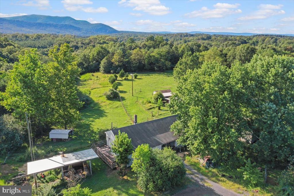 This property features two parcels totaling 38.91 acres, surrounded by rolling fields and mature trees, creating a peaceful rural retreat. The land is ideal for hunting or creating a homestead. Wooded areas and open fields attracting a variety of wildlife, making it a perfect spot for outdoor enthusiasts. In addition, the perfect setup to live on the land. The home boasts a spacious deck that overlooks the mountain views, perfect for savoring morning coffee or watching the sunset. Inside, the residence includes 2 comfortable bedrooms and 2 full bathrooms, providing ample space. An outdoor woodstove adds to the cozy atmosphere, making it ideal for year-round living. The property also includes a 40x60 barn built in 2008, offering plenty of storage and workspace for farming or hobbies. Additionally, several animal sheds equipped with water and electricity provide excellent facilities for livestock or other animals. With its tranquil setting and prime hunting opportunities, this homestead is a perfect haven for those seeking a blend of comfort and adventure. Shown by appointment only, please do not drive in the driveway.