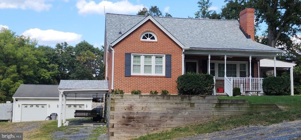 Discover this spacious brick Cape Cod home set on approximately 2.94 acres, perfect for comfortable living and entertaining. This inviting residence features 3 bedrooms and 2.5 baths, with two additional bonus rooms upstairs ideal for a home office, playroom, or guest space. The finished basement with a private entrance offers a wet bar area, full bath, and bedroom—making it a perfect in-law suite or private retreat. Enjoy the convenience of two laundry areas, one in the basement and one near the upstairs kitchen. Two bedrooms are conveniently located on the main level. Step outside to a large yard, with its expansive back deck, covered side and front porches, and a generous patio area—ideal for all your outdoor entertaining needs. Ample parking is provided by a carport, detached garage with an extra attached storage or hobby area. The Main garage is approximately 28x28 and features heat and air for comfort year round includes an air compressor with line and a half bath . Perfect for those automotive lovers or just doing home projects. The attached storage area is approximately 37x17. Recent updates: New roof June 2025 New HVAC Sept 2024 New front porch ceiling and carport metal roof just added. Only minutes from town, I-66, I-81 and Rt 522 but when you step into the spacious yard you will think you are in your own private oasis. This home offers the perfect blend of space, functionality, and comfort—don’t miss your opportunity to make it yours!
