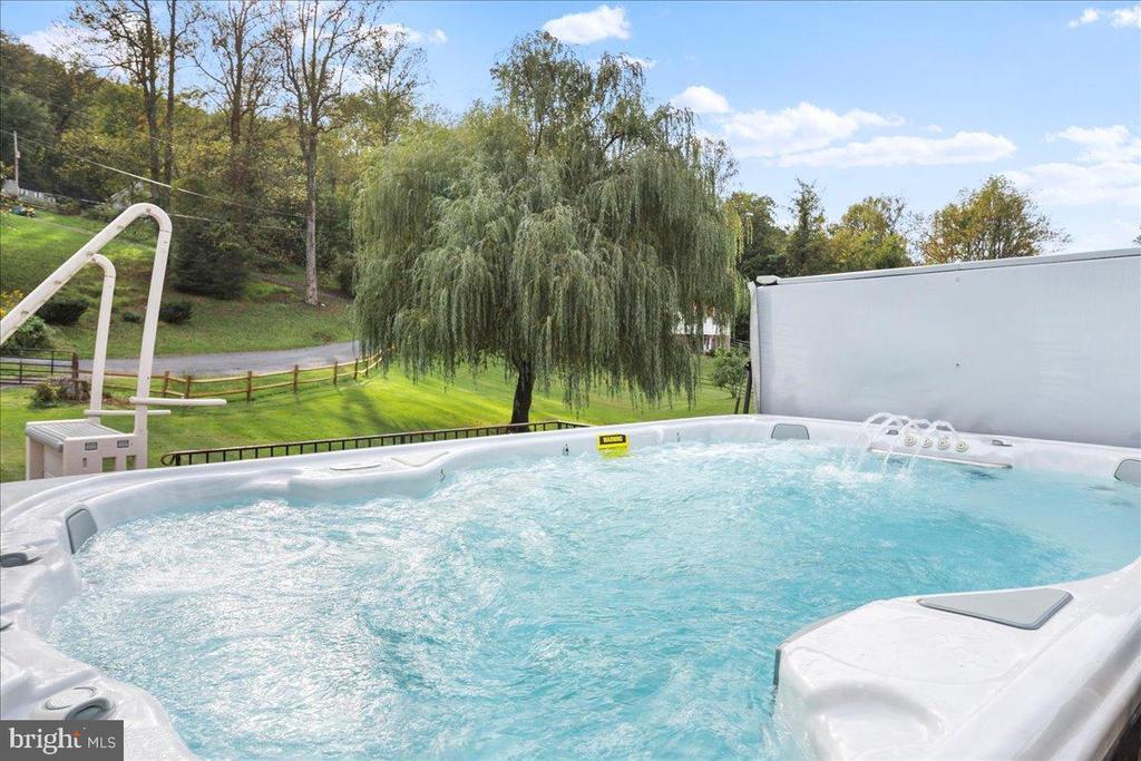 Extensive Hardscape, Exterior Lighting, Flood Lights, Gutter System, Hot Tub, Deck(s), Patio, Porch(es), Porch-enclosed, Split Rail Fence