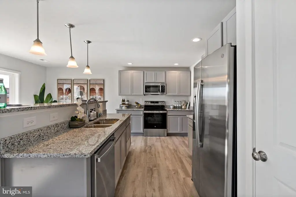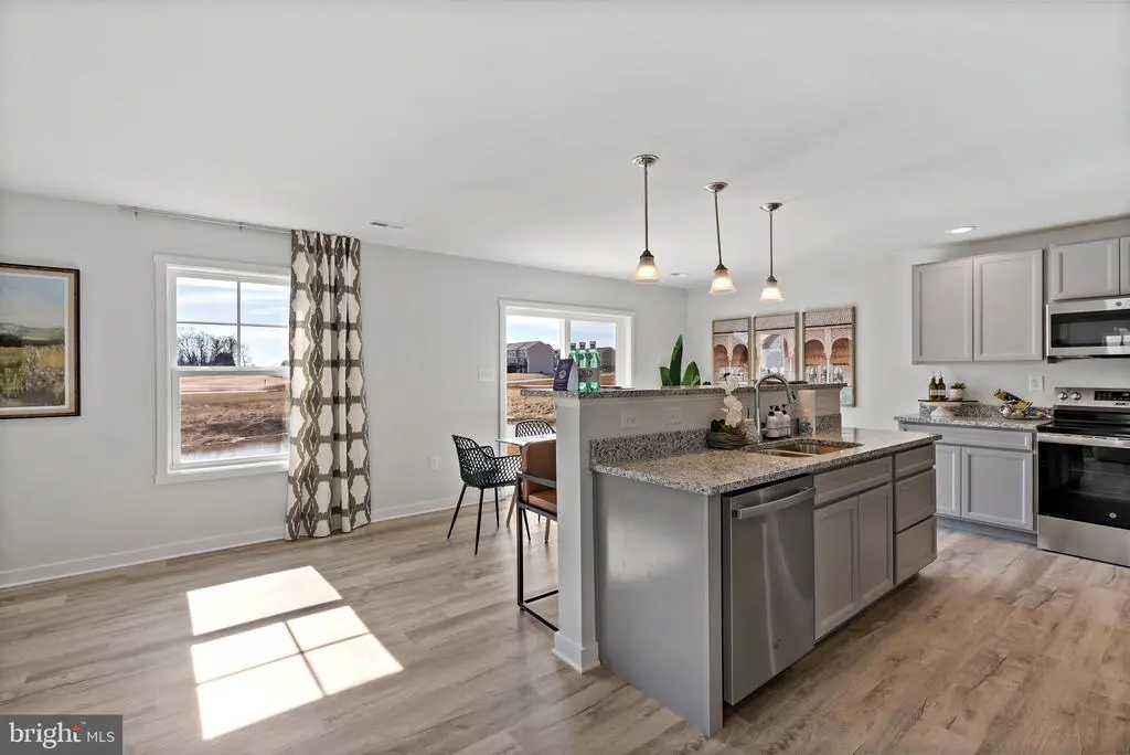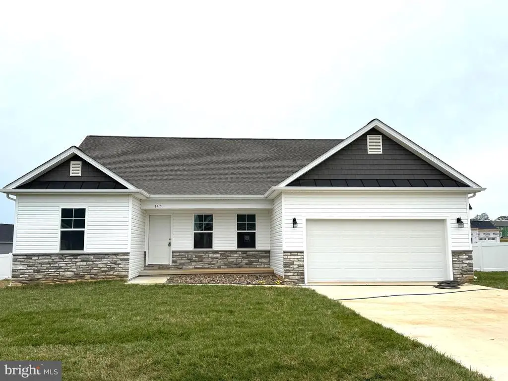 Ready for Quick Delivery! This brand-new 4-bedroom, 3-bath rancher offers 3,500 sq ft of beautifully finished living space. The main level is designed for both entertaining and everyday living, featuring a spacious kitchen with island, granite countertops, pantry, and stainless steel appliances that flows seamlessly into the large family room. A separate formal dining room provides the perfect space for special meals and gatherings. The primary suite is a private retreat, complete with a walk-in closet and a luxurious bathroom featuring a corner soaking tub and a tile shower with glass door. Two additional bedrooms and a second full bath on the main level provide plenty of space for family or guests. Step outside to enjoy a 12x16 composite deck, ideal for relaxing or hosting friends and family. The fully finished lower level adds even more living space, including a spacious rec room, media room, a fourth bedroom, and a third full bath—perfect for guests, play, or a home office. The exterior features elegant stone accents and a 2-car garage with automatic opener, combining curb appeal with convenience. Ideally located just minutes from I-81, shopping, grocery stores, and restaurants, and near both Spring Mills and Hedgesville, The Communities of Burwell offers the perfect blend of modern comfort and everyday convenience. Builder is offering closing cost assistance when using the preferred lender!