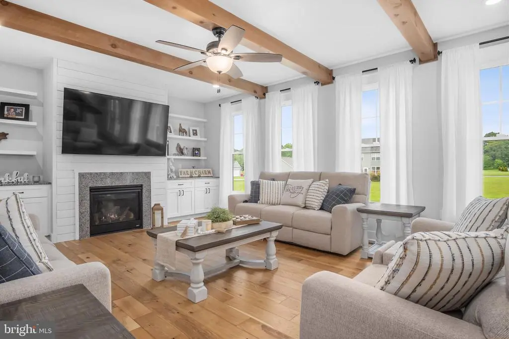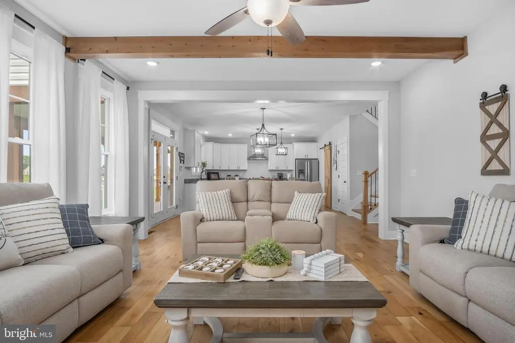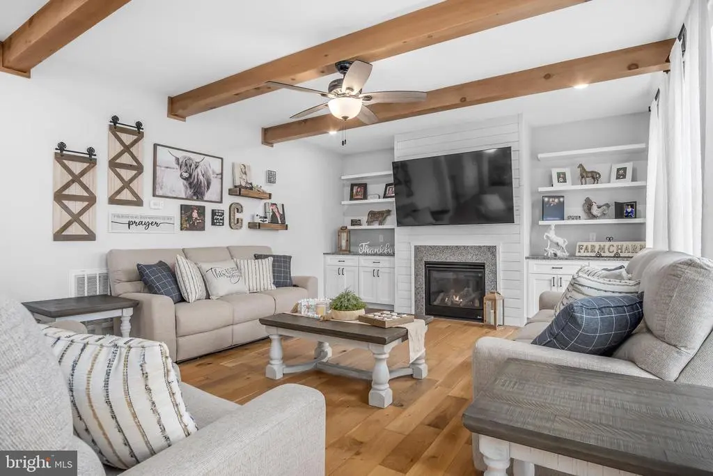 Welcome home to the perfect mix of fresh, modern design and laid-back country charm. Set on 1.4 acres in the exclusive Little Georgetown Estates, this like-new 5 bedroom, 2.5 bath modern farmhouse has everything you’ve been dreaming of-and more. From the moment you step onto the inviting full front porch, you’ll feel the warmth and personality this home offers. Inside, the main level is wide open and full of light, with gorgeous hardwood floors, custom built-ins, and stylish touches like wooden ceiling beams and a gas fireplace that anchors the cozy family room. The chef’s kitchen is made for real life and real entertaining, with an oversized island, gas cooking, tons of cabinet & counter space, and a walk-in pantry. The family room, dining & kitchen flow effortlessly from one space into the next. Need a quiet space to work from home or host guests? You’ll love the main-level bedroom or home office, privately tucked away behind a rustic sliding barn door. There is also a convenient mud room just off the garage with a built in bench and coat station. Upstairs, the spacious primary suite offers a relaxing escape with a tray ceiling, a huge walk-in closet, and a spa-like bath featuring dual vanities, a freestanding soaking tub, and a walk-in shower. There’s also a loft area that works great as a playroom, homework space, or bonus lounge—and the secondary bedrooms are all generously sized, giving everyone room to spread out. The laundry room is conveniently located on the bedroom level as well. There’s also a full unfinished basement with rough-in for a future bathroom—ready when you are to finish it your way. Outside you will love the large covered rear porch—ideal for weekend barbecues, morning coffee, or just unwinding. Located in the Spring Mills school district, this home is packed with quality finishes, thoughtful details, and room to grow.