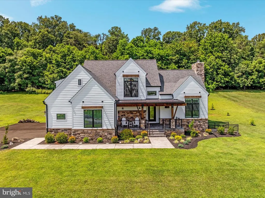One of a kind! One, if not the most upgraded homes in the area! You must see to appreciate. With $250,000+ in upgrades, this home's timeless design meets modern sophistication in this custom-crafted 4 bedroom, 4.5 bath estate nestled on a serene 2+ acre lot backing to lush woodlands. A true showpiece of elegance and craftsmanship, this one-of-a-kind residence offers an exquisite blend of natural textures and high-end finishes—both inside and out. From the moment you arrive, the home makes a lasting impression with its rich fusion of stone, natural wood accents, and durable HardiPlank siding. The inviting covered front porch welcomes you in, while the rear covered porch offers a peaceful retreat wrapped in scenic views. With architectural detailing and a seamless connection to the landscape, this home offers the perfect balance of charm and refinement. Step through the soaring two-story foyer into a light-filled open layout adorned with engineered hardwood floors, wood-beamed ceilings, and statement finishes. At the heart of the home lies the chef’s dream kitchen, boasting a ZLINE dual-fuel range, commercial-grade vent hood, high-end countertops, a shimmering mosaic tile backsplash, and designer cabinetry built for entertaining. Flowing effortlessly into the spacious family room, this is where form meets function, ideal for gathering around the warmth of refined textures and premium materials. The main level office with its double-entry barn doors offers lots of light and space for the work at home, or flexroom, choices. The main-level primary suite is a private haven featuring a tray ceiling, access to the rear patio, and a custom oversized walk-in closet. The spa-like primary bath pampers with an oversized frameless glass shower, dual vanities, a freestanding soaking tub, and luxurious satin brass and stainless steel finishes that exude quiet luxury. Upstairs, you’ll find three generous bedrooms, each with walk-in closets. Two bedrooms share a Jack-and-Jill bath with stylish finishes, while the third serves as a junior suite with soft carpeting and a private en-suite bathroom featuring sleek subway tile and a frameless shower. The expansive 2,200+ sq ft basement is a blank canvas with endless possibilities—currently a vibrant entertainment hub. Highlights include a custom bar with a live-edge wood top, stone backsplash, granite surfaces, ambient lighting, and built-ins for your wine and beverage collection. A full bath, walk-up access, and an oversized storage room/gym space complete the lower level. Located in the picturesque Brookside community, you’ll enjoy the serenity of a rural setting with convenient access to Route 81, the Martinsburg shopping plazas, Poor House Farm Park, Black Draft Distellery and more fun and popular sites! It’s the best of both worlds: tranquility with town proximity. Schedule your private showing of 288 Elegant Drive and experience its rare blend of luxury, privacy, and functionality before it’s gone. This is not just a home, its a lifestyle!