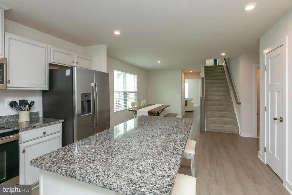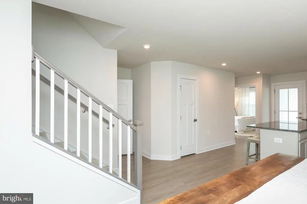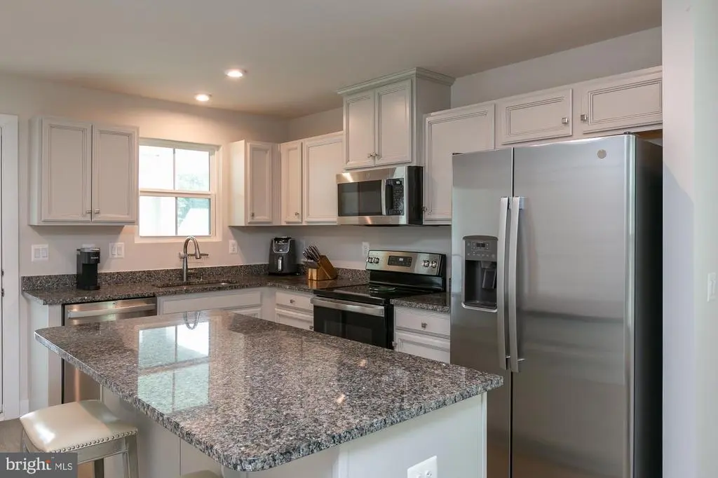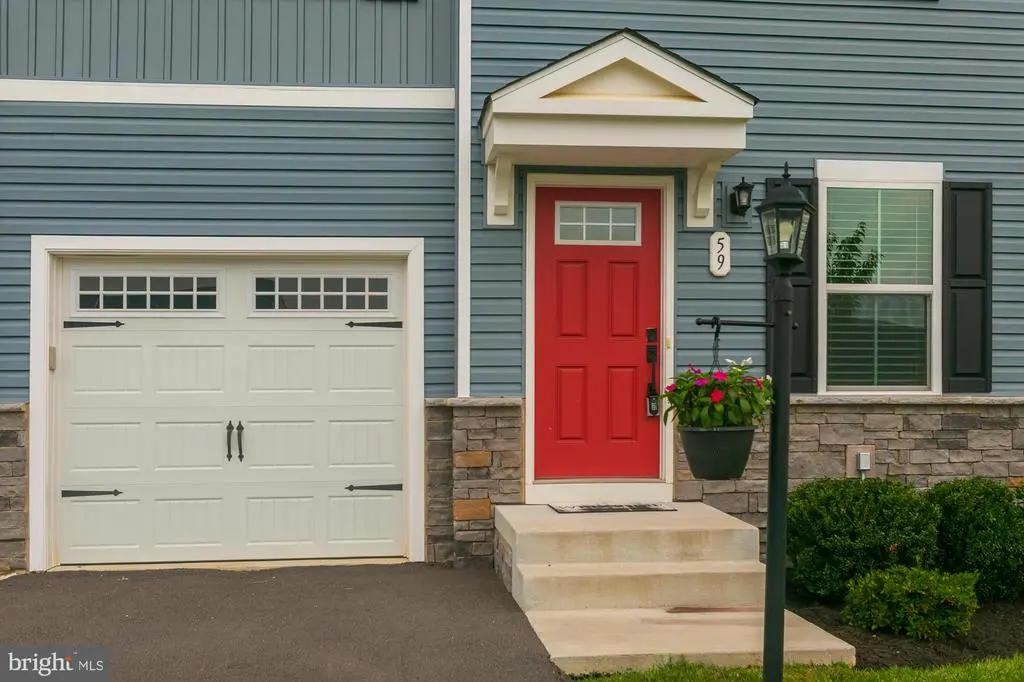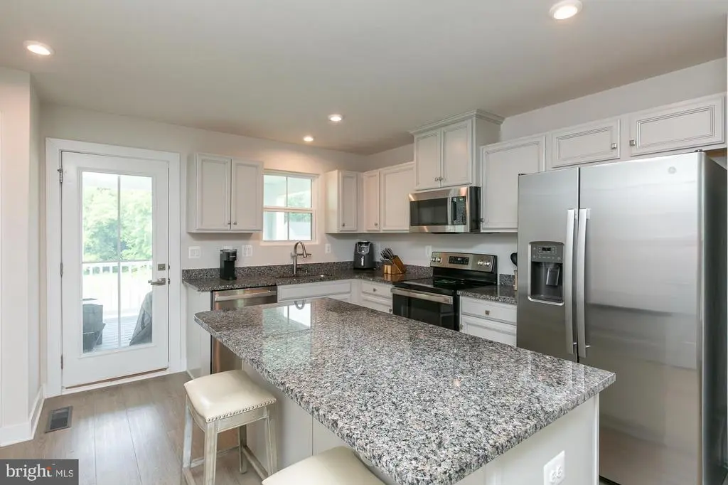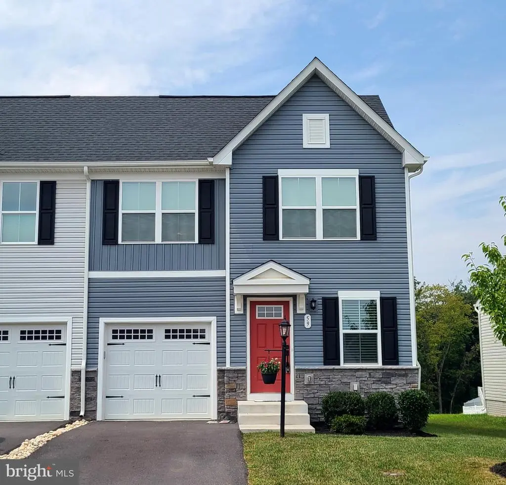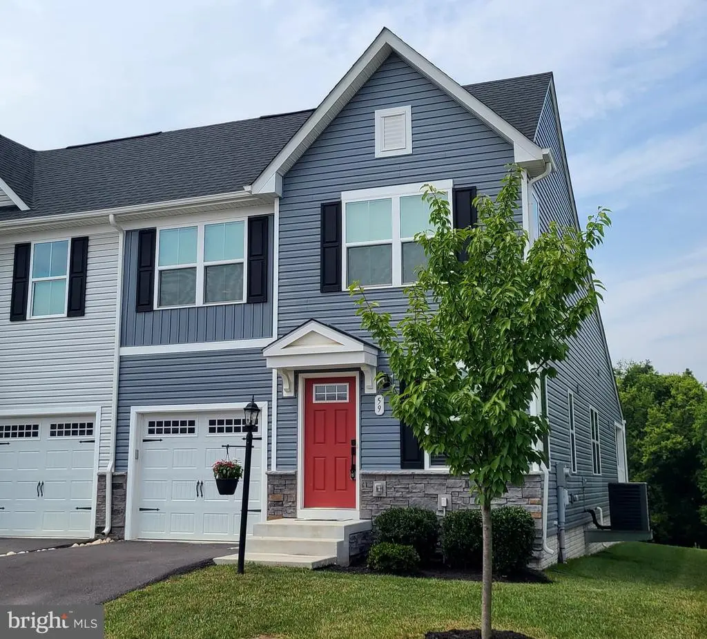 Bright and airy, this beautifully maintained townhome villa offers comfort, style, and functionality in every corner. The main level features luxury vinyl plank flooring throughout, a cozy living room with a warm electric fireplace, and a stunning gourmet kitchen complete with a large island with breakfast bar, granite countertops, and sleek stainless steel appliances. The main level also boasts a private primary suite with a tiled shower, double vanity, and generous walk-in closet. Upstairs, you'll find two additional bedrooms, each with their own walk-in closet, providing ample sleeping space or room for a home office. A full unfinished basement with bath rough-in offers exceptional storage or potential for future expansion. Off the kitchen, step outside to a covered rear deck that overlooks peaceful community greenspace and mature trees - perfect for relaxing or entertaining. This home combines modern finishes with a serene setting, making it a truly exceptional place to call home.