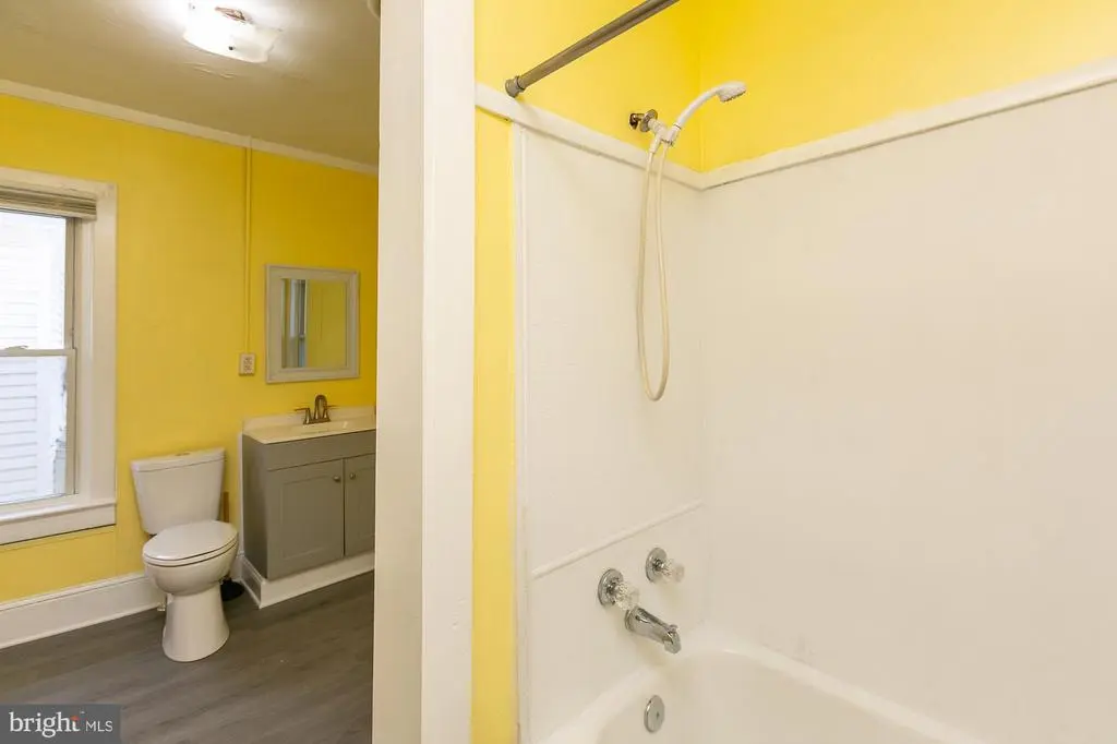 Bathroom - Tub Shower, Built-Ins, Ceiling Fan(s), Wood Floors