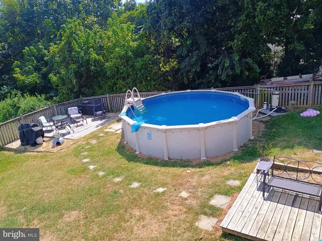 Charming 3 bedroom 2.5 bathroom split level home situated on an oversized corner lot in Stonebrook Village. Spacious eat-in kitchen with ample natural light via large windows. Custom cathedral ceilings in the living room and primary suite. The Primary bedroom hosts an en-suite bathroom with double vanities, soaking tub, tiled shower and outfitted walk-in closet. Plentiful closet space throughout all bedrooms and hallways of the home. Conveniently located upstairs laundry. Open concept finished basement with half bath and opportunity for 4th bedroom. Oversized walkout basement storage area. Fenced backyard complete with above ground pool and two decks bordering protected nature area. Expansive driveway with ability to park up to 8 cars. Recent upgrades include roof (2022), refrigerator (2023), permitted above ground pool (2022). Conveniently located in the heart of Hedgesville. Easy access to popular commuter route I-81 and I-70, shopping and restaurants.