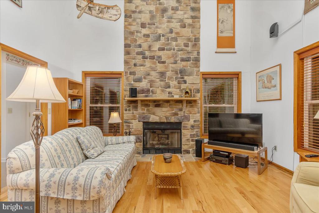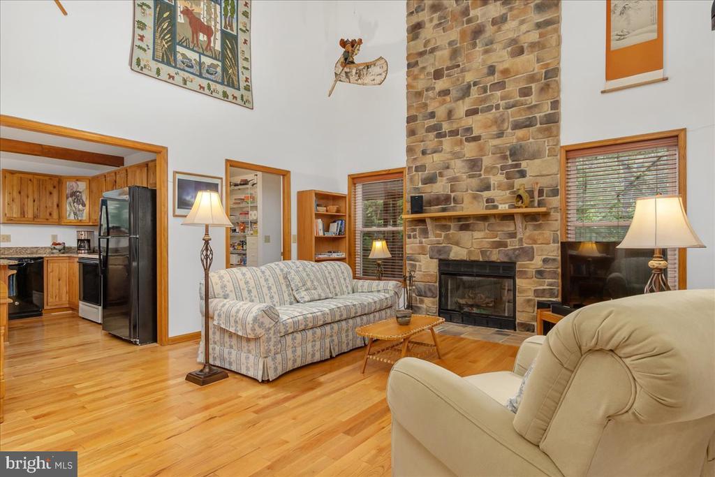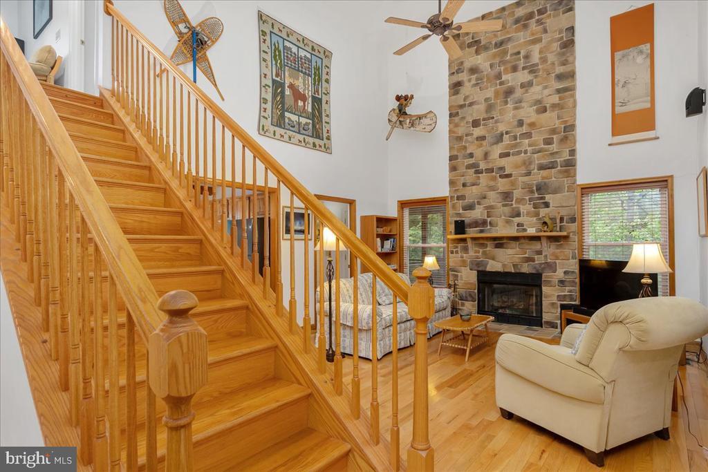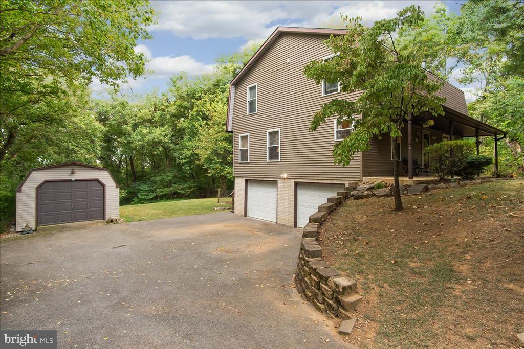 Set on a private 2.01-acre cul-de-sac lot in Chesley Estates—a popular Falling Waters neighborhood with nearby access to the Potomac River—this move-in-ready home checks all the boxes and blends light-filled living with a warm, woodsy vibe. A full-length front porch welcomes you inside to an open, bright floor plan with oak hardwood floors through most of the main level, anchored by a dramatic two-story family room with a floor-to-ceiling stone wood-burning fireplace. The kitchen offers a center island with seating and a charming greenhouse window over the sink, plus a dining area with slider to the rear deck; exposed wood beams tie the spaces together. The main-level primary suite features abundant natural light, a walk-in closet, and an ensuite bath with double vanity. A large laundry/mudroom completes the main level. Upstairs adds two bedrooms, a full bath, a versatile loft, and a tucked-away office/playroom/craft room. The walkout lower level is ready for an easy finish and provides interior access to an oversized two-car garage with a storage/workshop area and a utility door to the exterior. Outdoor living shines with the full-length front porch, a charming screened-in side porch, and a rear deck overlooking the expansive yard. Bonus: a huge detached garage/workshop with electric for projects and storage. Major updates include a new roof and gutter guards (2023) and a newer gas furnace—this one is sure to impress!