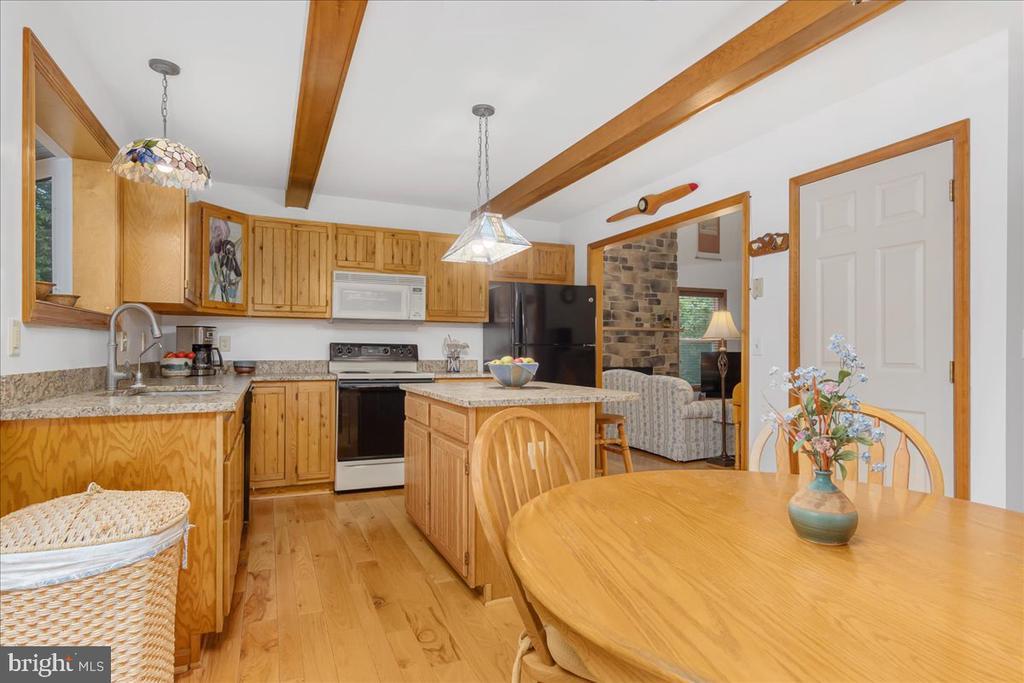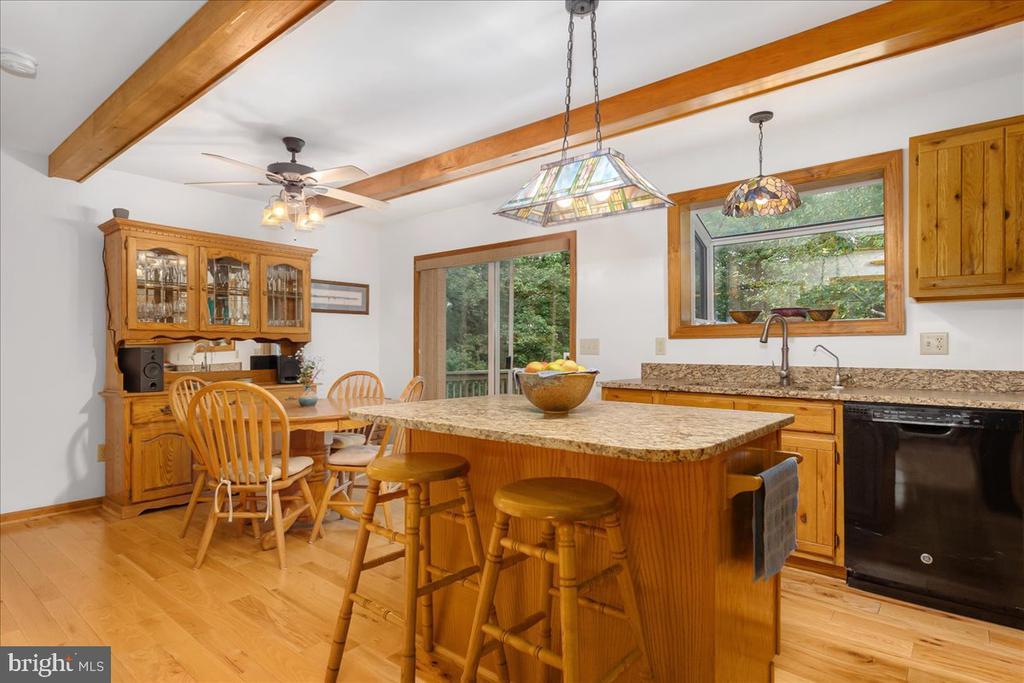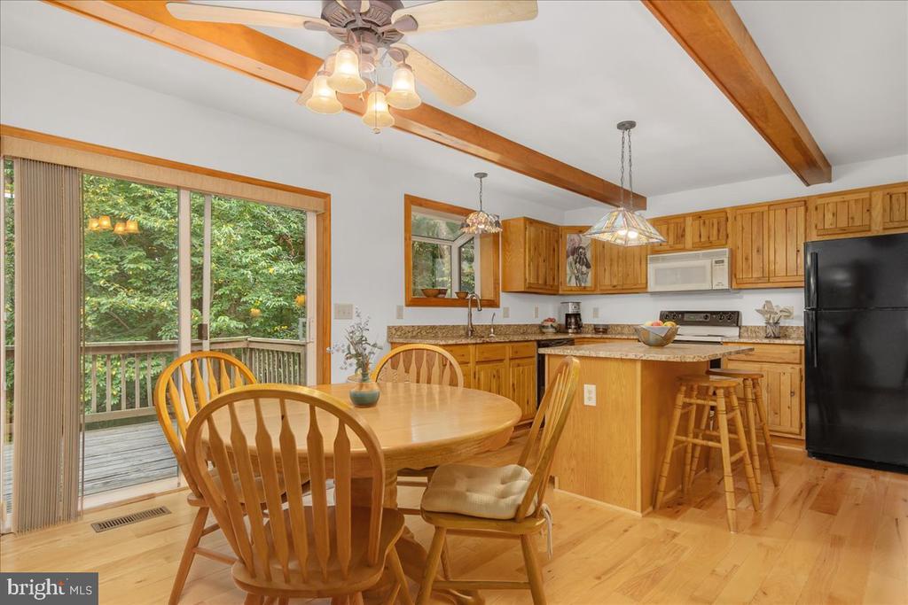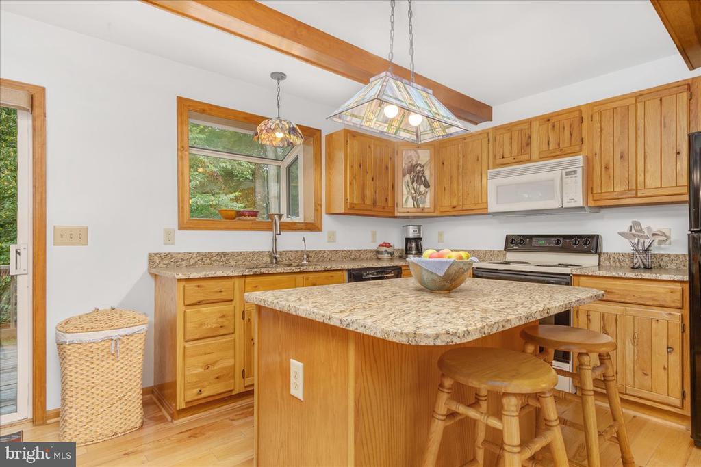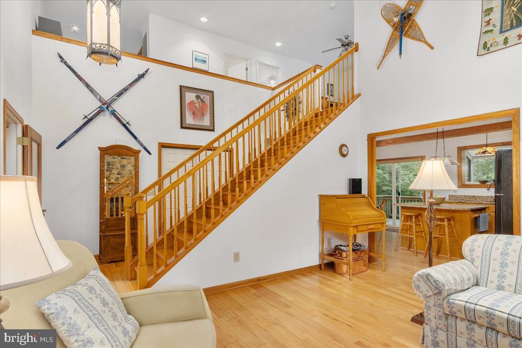 Set on a private 2.01-acre cul-de-sac lot in Chesley Estates—a popular Falling Waters neighborhood with nearby access to the Potomac River—this move-in-ready home checks all the boxes and blends light-filled living with a warm, woodsy vibe. A full-length front porch welcomes you inside to an open, bright floor plan with oak hardwood floors through most of the main level, anchored by a dramatic two-story family room with a floor-to-ceiling stone wood-burning fireplace. The kitchen offers a center island with seating and a charming greenhouse window over the sink, plus a dining area with slider to the rear deck; exposed wood beams tie the spaces together. The main-level primary suite features abundant natural light, a walk-in closet, and an ensuite bath with double vanity. A large laundry/mudroom completes the main level. Upstairs adds two bedrooms, a full bath, a versatile loft, and a tucked-away office/playroom/craft room. The walkout lower level is ready for an easy finish and provides interior access to an oversized two-car garage with a storage/workshop area and a utility door to the exterior. Outdoor living shines with the full-length front porch, a charming screened-in side porch, and a rear deck overlooking the expansive yard. Bonus: a huge detached garage/workshop with electric for projects and storage. Major updates include a new roof and gutter guards (2023) and a newer gas furnace—this one is sure to impress!