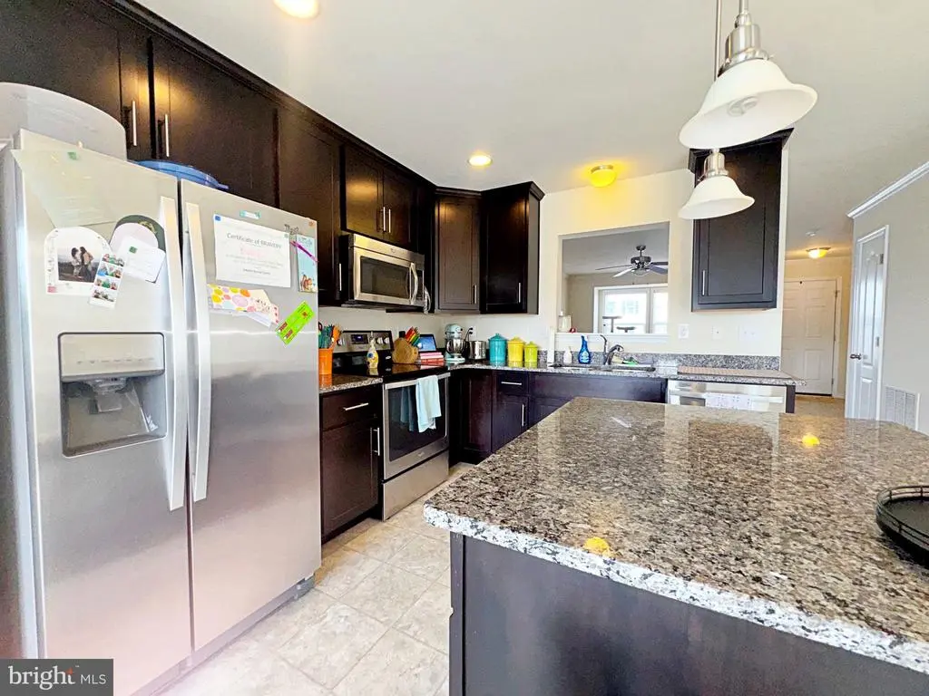 Step into this beautiful end unit at the much desired Kensington Terrace neighborhood. Home features 3 bedrooms 2 1/2 baths with loads of upgrades. Kitchen boasts stainless appliances, center island, granite countertops, 42 inch cabinet upgrade and pendant lights. 8 ft morning room extension off the kitchen makes this home very spacious and adds loads of natural light. Upstairs the primary bedroom carries the 8 ft extension and double windows. Primary bath features separate shower, soaking tub and double sinks. Home has a full unfinished basement with a rough in for an additional bathroom, walkout doors to the rear.