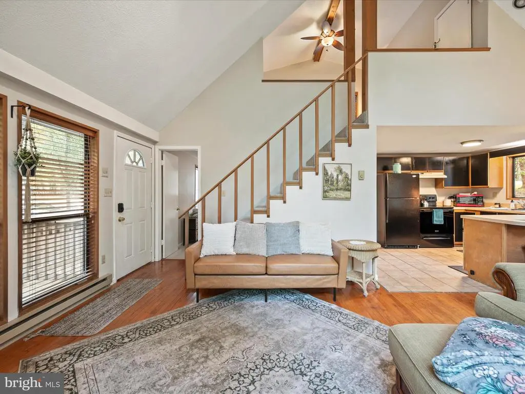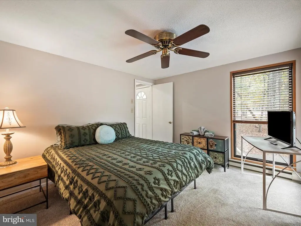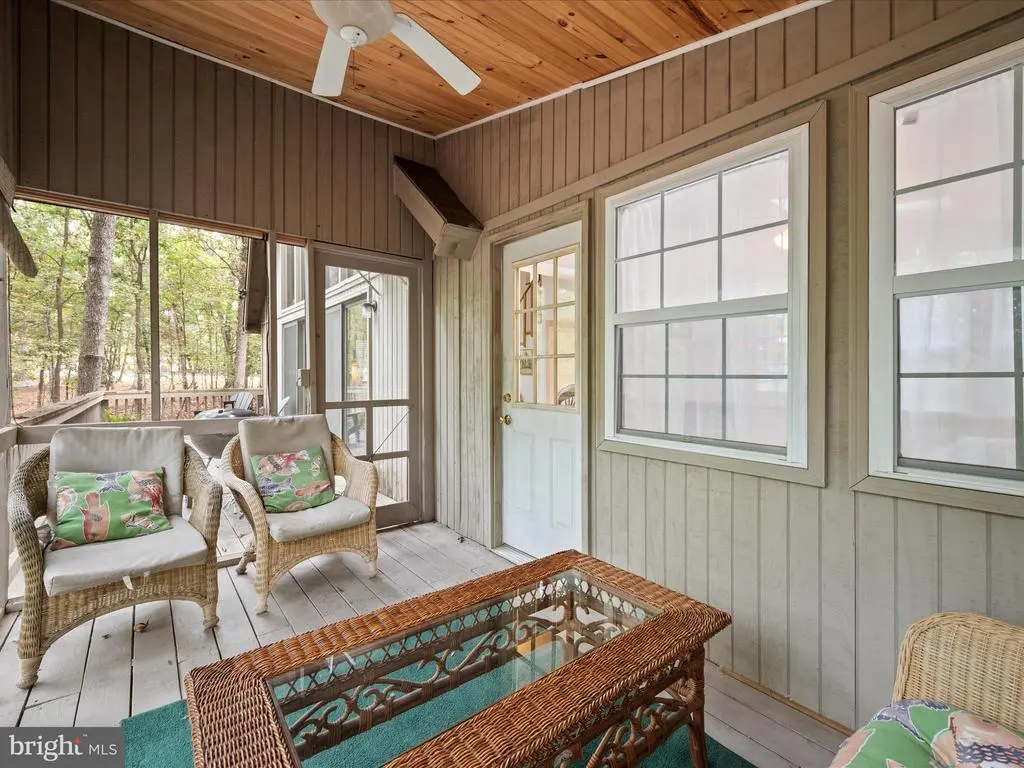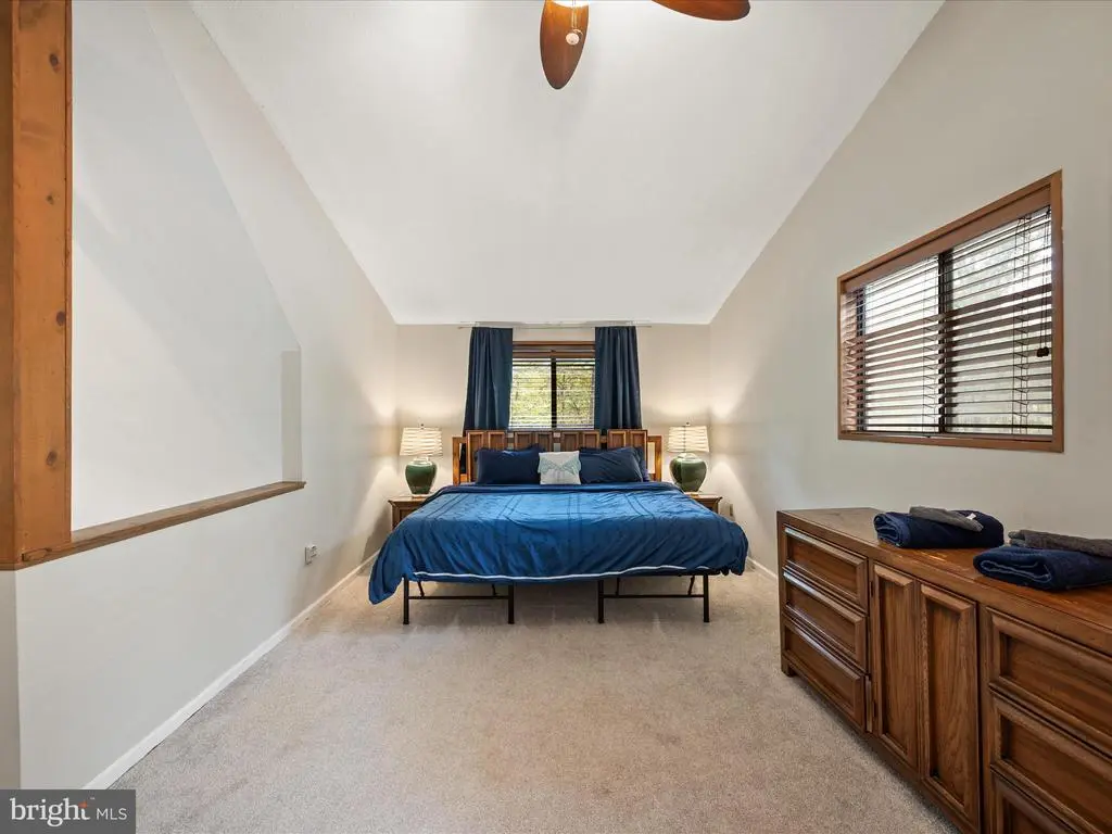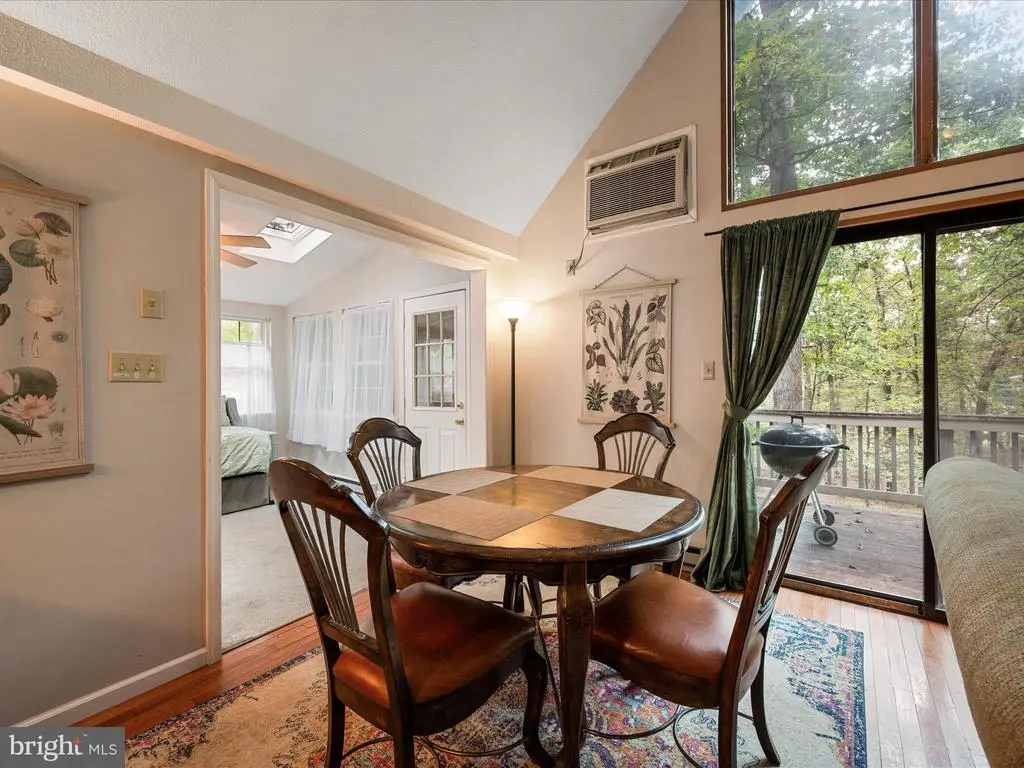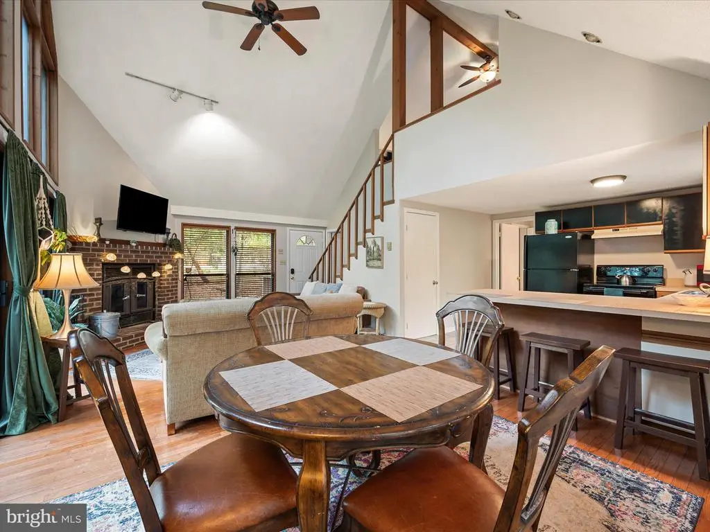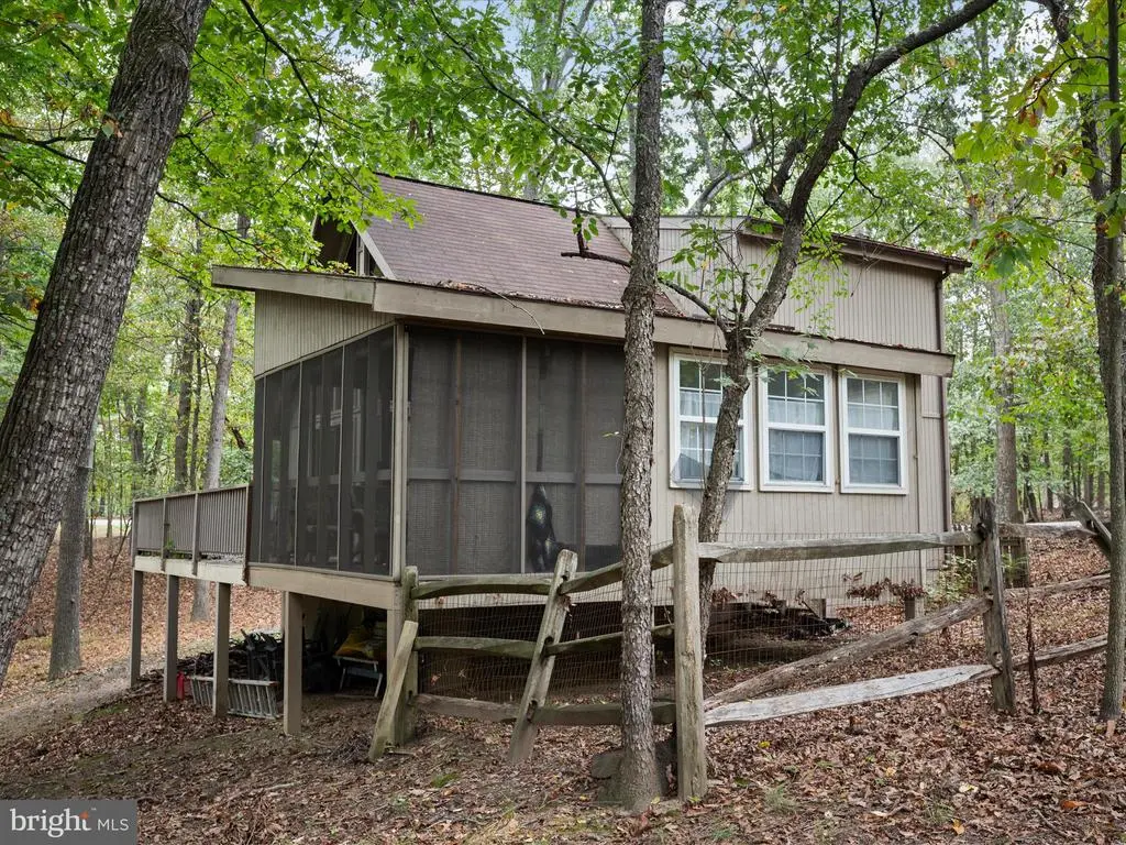 Welcome to this charming 2-bedroom, 2-bath cabin nestled in The Woods resort community. The main level features a comfortable bedroom and full bath, along with an inviting open layout that connects the kitchen, dining area, and living room. Soaring two-story A-frame windows and a wood-burning fireplace create a warm and welcoming focal point, while double sliding glass doors lead directly to the deck for seamless indoor-outdoor living. Just off the kitchen, a sun-filled bonus room with walls of windows and two skylights. Use it as a guest room, home office, or playroom; the possibilities are endless. From here, step out to the screened porch for bug-free outdoor enjoyment, or continue onto the adjoining deck that overlooks the peaceful wooded surroundings. Upstairs, the loft-style primary suite includes a private bathroom with a skylight that fills the space with natural light and tree-top views. Life at The Woods offers year-round recreation all within 90 minutes of Washington, D.C. With a Class B membership available for an additional initiation fee, you can enjoy private club amenities including tennis, pickleball, indoor and outdoor pools, a full fitness center, racquetball, and more. The community also features a clubhouse, pub and grille, spa and salon, playgrounds, fishing ponds, and easy access to Sleepy Creek Wildlife Management Area for hiking, hunting, and outdoor adventure. Whether you’re looking for a full-time residence or a weekend retreat, this cabin pairs the serenity of a wooded escape with the lifestyle and amenities of a vibrant resort community.