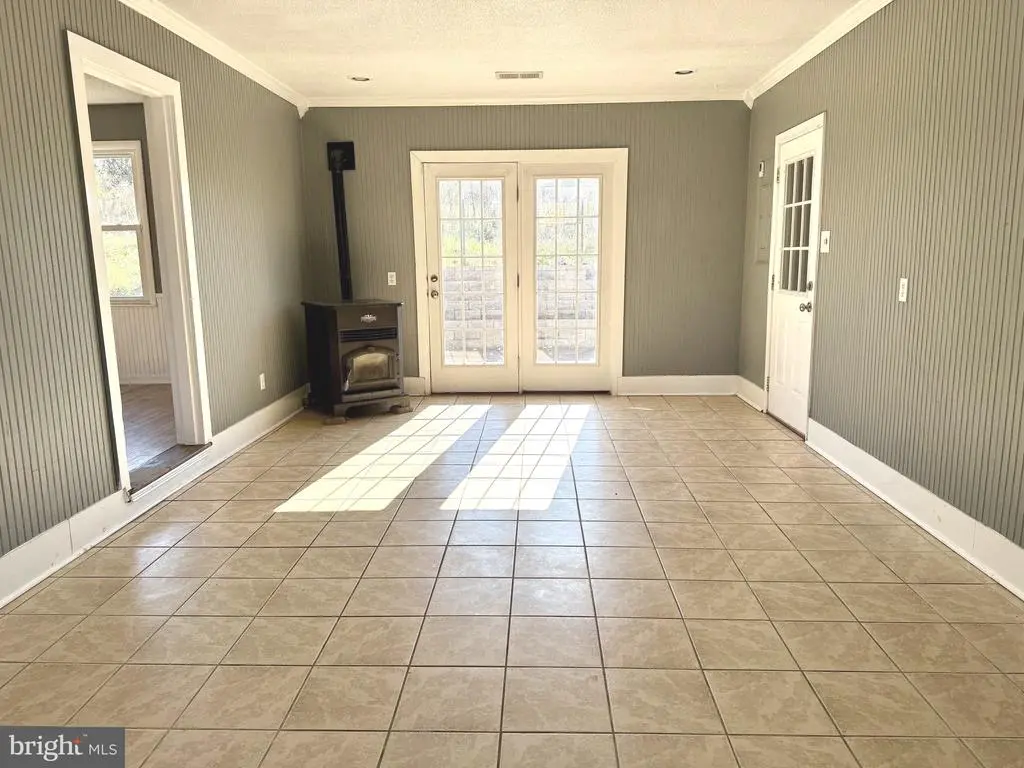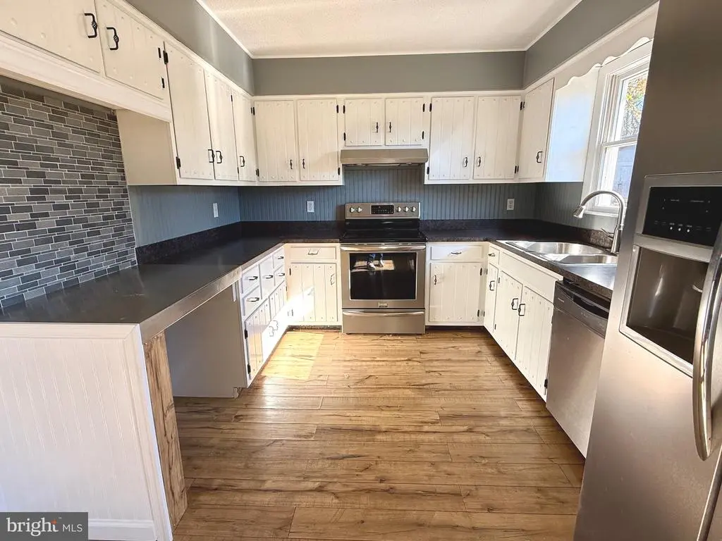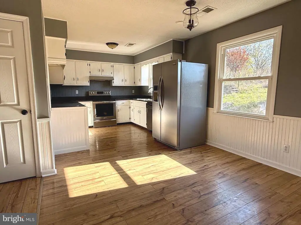 Charming 3-Bedroom Rancher with Scenic Views! Welcome home to this inviting 3-bedroom, 2-bath rancher offering 1,560 square feet of one-level living. Situated in an established neighborhood surrounded by mature trees and a peaceful, park-like setting, this property backs to open farmland—the perfect blend of privacy and natural beauty. The spacious asphalt driveway and attached 2-car garage provide plenty of parking. Inside, you’ll find a thoughtfully designed floor plan with a comfortable atmosphere throughout. The kitchen features granite countertops, stainless steel appliances, LVP flooring, and a coffee bar, all open to the dining area—perfect for everyday living. Your primary bedroom offers a walk-in closet and a private en suite bathroom complete with a soaking tub, modern basin sink, and glass-enclosed shower. The living room is accented with elegant wainscoting and a large picture window overlooking the deep front yard, now showcasing the vibrant colors of fall! Off the main living area, a spacious family room with tile flooring and a wood stove provides a cozy spot for gatherings. This room connects directly to the garage and features French doors leading to a large backyard patio, ideal for outdoor entertaining or quiet relaxation. The home comes equipped with a built in security system, providing you with peace of mind when you are away. A detached shed offers additional storage for tools, lawn equipment, or hobbies. Enjoy the best of rural tranquility and neighborhood charm, all with no HOA!
