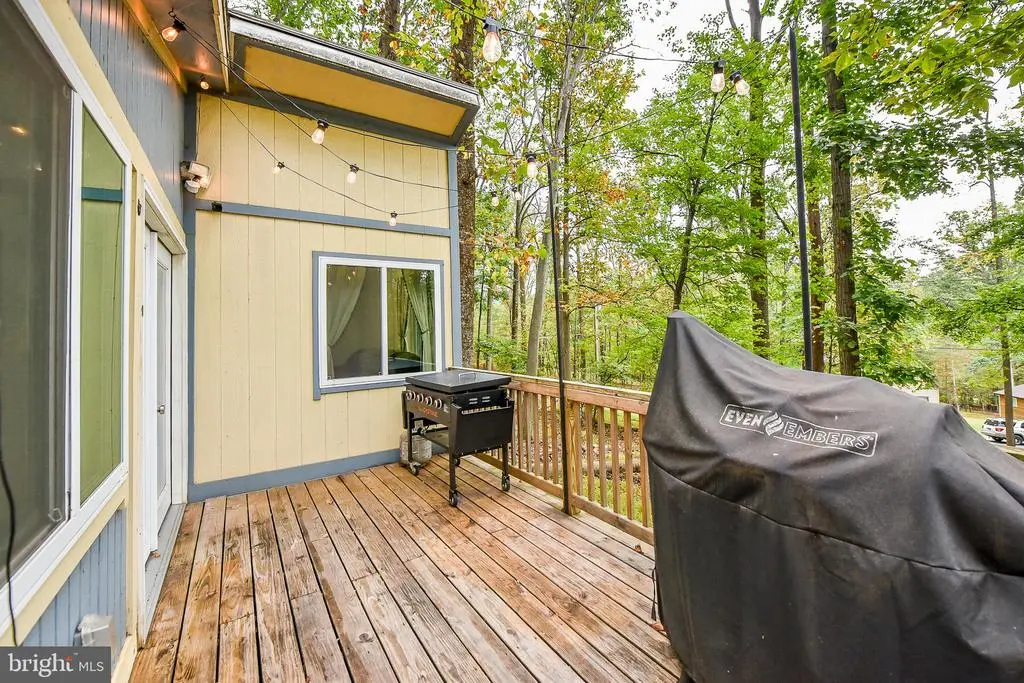 This lovely cabin, situated on a 1.5-acre lot bordering the Sleepy Creek Wildlife Management Area in the Eastern Panhandle, offers privacy and outdoor enjoyment. The community includes a private lake with a beach, swimming pier, and picnic area. The 2-bedroom, 1-bath property has been thoughtfully updated. The kitchen features white shaker cabinetry, granite countertops, stainless steel appliances, and a kitchen island. An open floor plan with vaulted ceilings and recessed lighting creates a bright, airy living space. French doors open to a spacious deck with scenic views, the perfect spot for morning coffee. Features include updated windows, bamboo flooring, and 200-amp electrical service. Storage under the home provides additional convenience. Schedule your showing today!