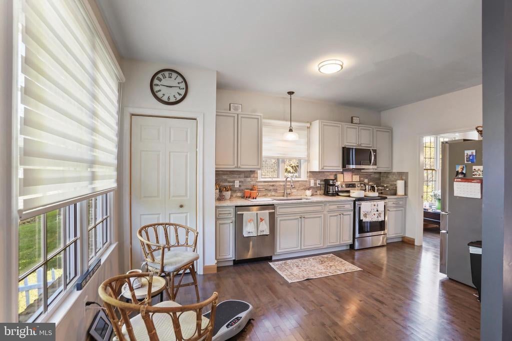 Welcome to 123 Morningside Drive, a well-appointed 2-bedroom, 2-bath villa offering 1,532 square feet of comfortable one-level living in the desirable Spring Mills community of Falling Waters. This home combines modern updates with timeless features in a convenient location just minutes from local amenities and major commuter routes. The home welcomes you with hardwood flooring and soaring 11-foot ceilings that flow through the foyer, formal living room, and dining area, creating an open and inviting feel. The kitchen has been beautifully updated with quartz countertops, a porcelain tile backsplash, and a full suite of stainless-steel appliances. Just off the kitchen, the den features hardwood floors, vaulted ceilings, and a wood-burning fireplace—an ideal place to unwind or gather with friends. The primary suite offers a peaceful retreat with vaulted ceilings, a ceiling fan, and a spa-inspired bath featuring porcelain tile floors, a walk-in shower with bench seating, and a custom vanity with built-in linen storage. A spacious walk-in closet with built-in drawers and shelving completes the suite. The secondary bedroom also features vaulted ceilings and a charming bay window, with a full hall bath conveniently located nearby. Residents of Spring Mills enjoy access to walking trails, a community pool, tennis and basketball courts, playgrounds, and a clubhouse. The location provides quick access to I-81, Route 11, and the MARC train in Martinsburg for easy commuting to Maryland, Northern Virginia, or Washington, D.C., while nearby shopping and dining at Spring Mills Towne Center add to the home’s convenience. With its thoughtful updates, light-filled layout, and low-maintenance design, 123 Morningside Drive offers the ideal combination of comfort, functionality, and style.
