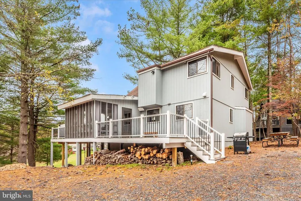 Beautiful Modern Chalet with Scenic Golf Course & Lakeside Views! This stunning 3 bedroom, 3 bath home offers a bright and open design with one bedroom conveniently located on the main level. A spiral staircase leads to the upper level, while large windows bring the outdoors in, with two bedrooms on the upper level. Every bedroom features a private en suite bath with sleek, spa style finishes. The updated kitchen boasts new cabinetry, white quartz countertops, and an electric oven. Breathtaking views from every angle, golf course, wooded setting, and serene lakeside scenery. Step outside to a spacious deck with a brand-new hot tub, perfect for relaxing or entertaining. Laundry on the main level. Furnishings and contents are available.