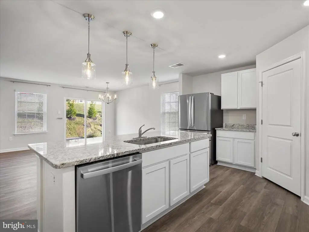 Looking for a 4-bed single family home in Martinsburg under $400K? This move-in ready rambler offers thoughtful upgrades, open concept living, and unbeatable value in Red Hill. Built in 2023, this 1,698 sq ft home blends modern efficiency with traditional comfort, all set on a professionally landscaped 7,918 sq ft lot. Step inside to a light-filled open floor plan perfect for entertaining. The kitchen features a large granite island, stainless steel energy-efficient appliances, and luxury vinyl plank flooring that runs throughout the main living areas. The spacious family room flows easily to a 12x20 patio, ideal for outdoor gatherings. The split-bedroom layout ensures privacy, with four bedrooms and two full baths offering flexibility for guests, work-from-home needs, or growing households. The primary suite includes a full bath and walk-in closet. A charming front porch with stone accents adds curb appeal, while the two-car garage offers ample storage. Low annual HOA fee of $158 and location in the desirable Red Hill community make this a smart and affordable choice. Conveniently located near commuter routes, schools, and local shopping. Whether you're upsizing, downsizing, or relocating, this Martinsburg gem delivers both style and practicality.