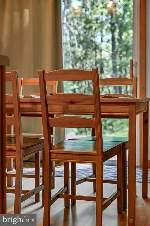 Adorable log cabin situated on over 5 acres for peace, quiet, and relaxation! Perfect for full time living or for a place to escape the hustle and bustle. The HOA states the property may not be used for an AirBnB. The front porch extends across the front and wraps around to the back of the home. You are greeted with an eye catching stone gas fireplace that extends to the high, vaulted ceiling. The kitchen and living room have hardwood floors and sliders that open to the deck. The open concept is perfect for entertaining and on the cool nights being able to open the sliding glass doors allows even more living space! There are 2 bedrooms, full bathroom with tub/shower, and stackable washer/dryer on the main level. Upstairs is the primary suite with sliding door that leads to a private balcony to enjoy that perfect cup of coffee, and a half bathroom. There is an extensive whole house water filtration system located in the crawlspace. The septic was pumped in 2023. The HOA is $100/yr. Internet is provided by Hardy Net. Explore the 5.26 acres the property offers, and still head over to Lost River State Park that is only 4 miles away for more fun and adventure! The property is currently an AirBnB due to being grandfathered into the HOA, as a result showing days/times may vary and are limited at this beautiful time of year.