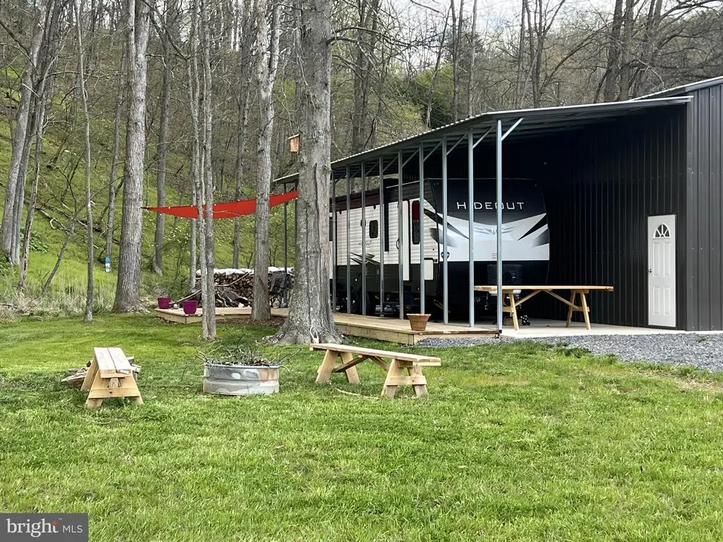 Escape to peaceful living on just under 234 riverfront acres on the Little Cacapon River, with beautiful mountain views and surrounded by nature. Enjoy the soothing sounds of a wet-water stream behind the barn, abundant wildlife, and exceptional birdwatching—plus unmatched stargazing under clear country skies with no artificial light in sight. This property is ideal for outdoor enthusiasts with walking and riding trails, a kayak launch, a picnic and firepit area (one by the river and one by the house site) and a 25x20 garden plot with a hydrant. A cleared home site is ready for your dream home, complete with two-year-old 110’ well and a three-bedroom-perc septic system are already in place. Paved state maintained road all the way to the gravel driveway. A permitted and built 30x50 steel barn adds tremendous value, featuring two 10’ garage doors, two man doors, two windows, and a heated utility room complete with a toilet, sink, pressure tank, and water filtration system. The barn includes full electric with a 200-amp panel and conduit already run to the house site. Enjoy outdoor cooking in the covered kitchen, with water, sewer and electricity. A 12x50 lean-to for camper parking makes it easy to live on -site, with an attached deck providing ample space for enjoying the outdoors. Located just 45 minutes from both Winchester and 2 hours from Washington, DC, this property offers the perfect blend of serenity and commuter convenience. Current house plans are available and have been approved by the county.