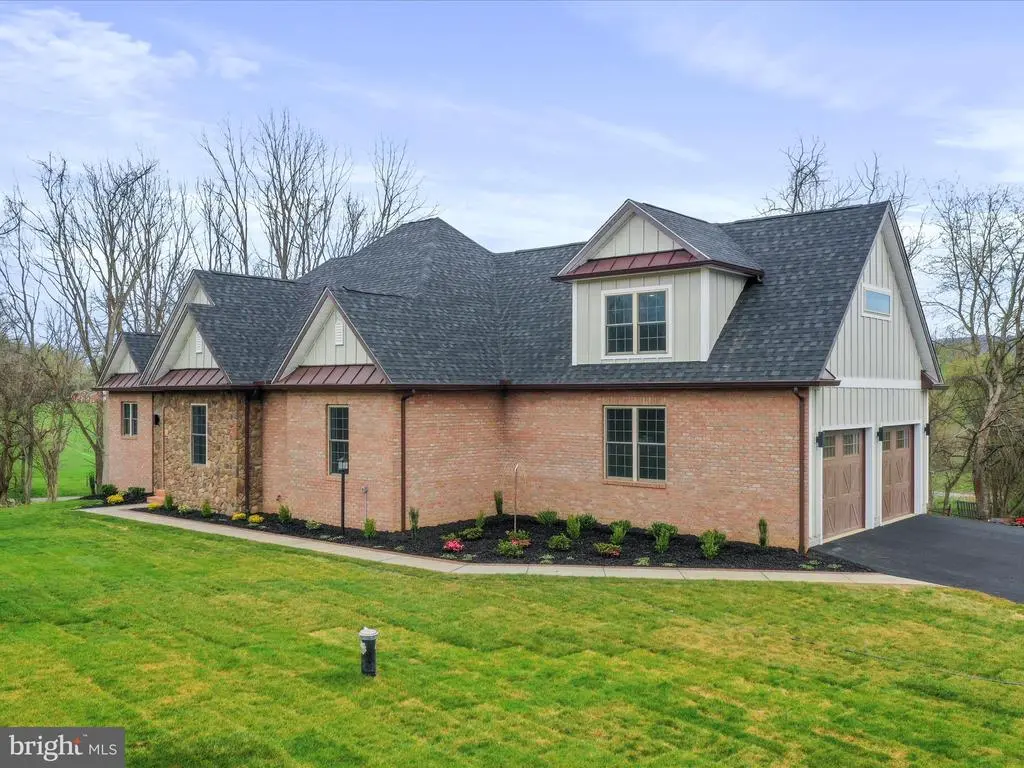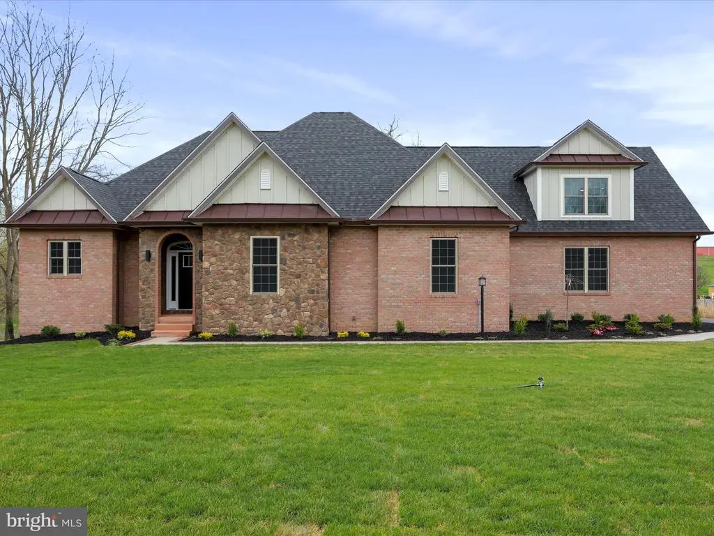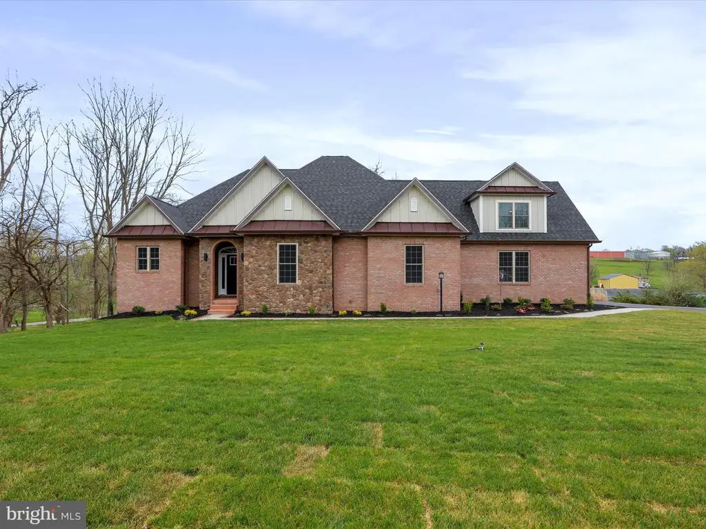 PRICE IMPROVEMENT! Home is completely done and ready for move in day! Welcome to this breathtaking brick and stone custom-built home, offering 4 spacious bedrooms and 3 and a half luxurious bathrooms. Nestled on almost 3 unrestricted acres, this property boasts an ideal blend of comfort, style, and practicality, with views of the surrounding mountains and pastures. The partially wooded lot ensures both privacy and scenic beauty, with plenty of space to enjoy your outdoor activities. Step inside to find gorgeous Locust hardwood floors, crown molding, chair rail, recessed lighting, and attention to detail throughout. The gourmet kitchen features beautiful granite countertops, Samsung stainless steel appliances, tons of soft close Ivory cabinets, a large accent kitchen island, a huge pantry, and a kitchen sink instant hot water heater—perfect for quick meals and entertaining. The Great room is a showstopper. With an 18-foot ceiling, a stone fireplace, wood beams and great natural light, this is sure to be your favorite spot in the house. Its inviting and cozy atmosphere is perfect for large gatherings or relaxing evenings. The primary bedroom is a true retreat, offering a tray ceiling with built-in reading lights and direct access to the rear deck, perfect for enjoying your morning coffee or evening sunsets. The spa-like primary bath is equipped with tiled flooring, a walk-in tiled shower inclusive of a bench, niche and double shower faucets, and heated and lit mirrors adding a touch of elegance to your daily routine. The split bedroom design is versatile and accommodating to many home buyers. The two front bedrooms share a Jack and Jill full bathroom equipped with double sinks, tiled floors and a tiled tub shower. In addition to the three main level bedrooms, there is a bonus room above the garage that serves as the 4th bedroom with a full bath, offering flexibility for any living arrangement. The oversized heated garage is a true standout, providing ample space for your vehicles and storage with 8' x 10' steel insulated garage doors and rear storage while the huge driveway accommodates up to 7 cars—ideal for hosting guests or storing multiple vehicles. The unfinished basement is a home of its own. Full of possibilities and space for any hobbies, storage or an area to finish off. The full basement has 9-foot ceilings, a French door heading out to the stamped concrete patio and a rough-in for a future bathroom. Use the outdoor space for entertainment or simply enjoy your yard in style. With no restrictions and a lot that is partially wooded, this home offers the perfect balance of peacefulness and tranquility. It gives you the freedom to personalize the property to your needs. The charm and functionality of this home truly make it one-of-a-kind. Schedule your tour today and discover all the exceptional details this home has to offer! Builders offering a $5,000 buyer's incentive...call to discuss!