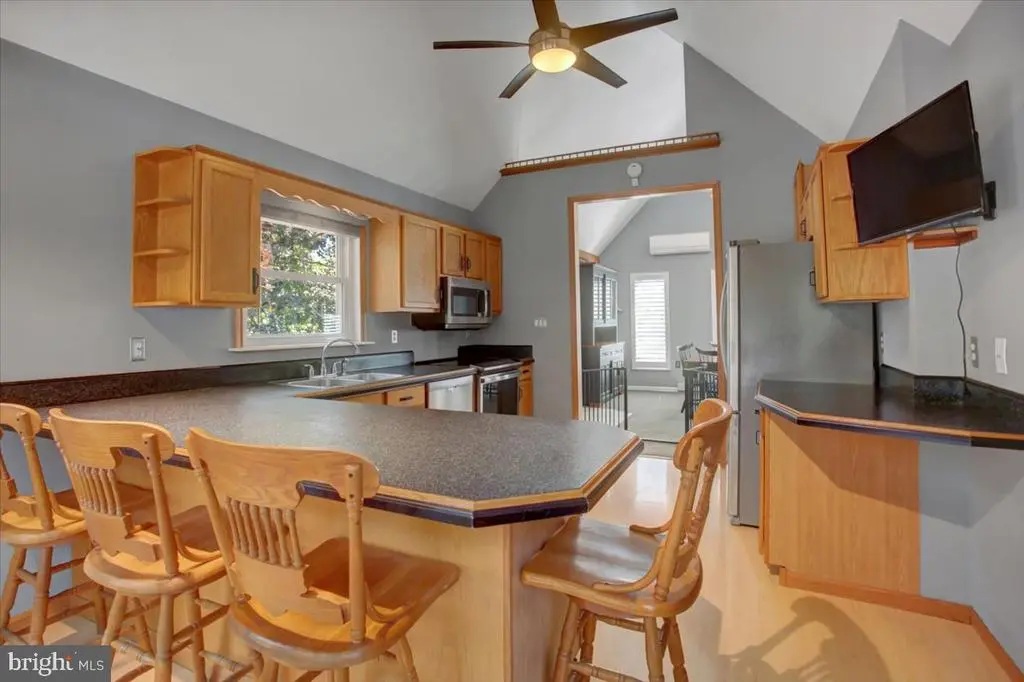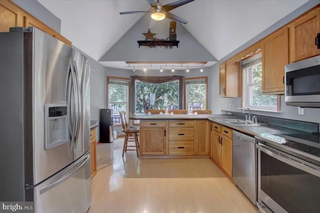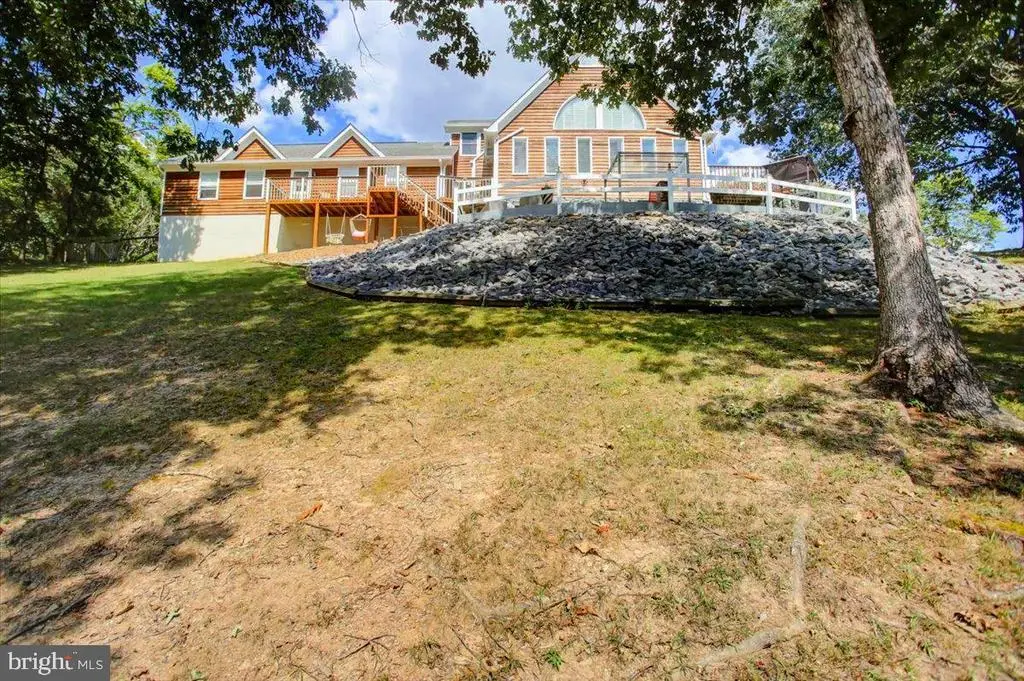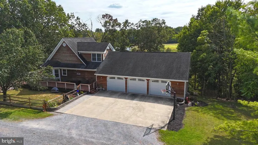 SEE VIDEO TOUR!!! Tired of the same old cookie cutter homes? Well, this isn’t one of them! Situated on an UNRESTRICTED 1.26 acre double lot bordering 235 feet of the Opequon Creek, you’ll find this 3 bedroom, 3 bath, contemporary home offering absolutely everything. Turning onto Our Lane, you’ll traverse a few turns on a well-maintained ¾ mile gravel road that leads to the property at the end. Approaching the property, you’ll quickly notice the unique architectural styling, beautiful stained siding, large 3-car garage, additional detached garage/shed, multiple decks and a view of the Opequon Creek. After parking on the concrete driveway, a quick step onto the large front deck leads to the wrap-around side deck and to the side entrance door. Entering, you’ll find a freshly professionally painted interior surrounding an open concept foyer/dining/living room combination with vaulted ceilings, large ceiling fan, a pair of pendant lighting fixtures, opposing brick accent walls and a sunken living room area. You’ll enjoy plenty of daylight from 6 large southwest facing windows as well as a huge arched window, all with beautiful wooden window shutters. Transitioning to the adjacent eat-in kitchen, you’ll find plenty of oak cabinetry and counter space, a peninsula with room for 4 stools, a prep counter, a complement of stainless steel appliances and a double bowl sink. The vaulted ceiling continues in the kitchen area as well as the daylight with a large bay window and 2 complementary windows overlooking the front deck and yard. Just off the living room area, is the main level primary bedroom with adjacent en-suite bath featuring a tile shower with sliding doors. Adjacent to the primary bedroom is a sitting area with a sliding door to the upper level deck as well as a walk-in closet. Through the sitting area is a door to the oversized 3 car garage offering 1,200 square feet of parking, storage and workshop area! Heading back to the living room area and ascending the steps to the upper level is the second of 3 bedrooms with its own attached full bath featuring another beautiful tile tub-shower combination. A door at the end of the bedroom, leads to two additional attic areas offering nearly 900 square feet of additional storage with drop-down stairs to the garage for access as well. Adjacent to this bedroom is the third of 3 bedrooms which is a unique loft bedroom. On your way back down the stairs be sure to stop and check out the perch area overlooking the main level. Heading down the stairs to the lower level is the ultimate relaxing and entertaining area! With over 800 finished square feet to offer, this is your family room, theater room, game room or anything your heart desires. Another full bath with jetted tub is also found on this level as well as a utility and laundry area. Yes, those full height windows also continue on this level providing plenty of daylight whenever you want it – this isn’t your ordinary lower level! Now for the ultimate entertainment area . . . step out the sliding doors and check out the huge rear patio area overlooking the back yard and Opequon Creek. 50 people coming over? No problem! Plenty of room for table space, outdoor seating, grills, smokers, flat-tops, firepit or even a future outdoor kitchen. Head up the steps to the upper level deck (remember, this also leads to the primary bedroom) and take in everything this property has to offer. Combine all of this with a beautiful detached garage/shed (with electric), a 6 year old roof, 4 mini splits just 3 years old, newer well pressure tank, treatment system and water heater, Leaf Filter gutter protection, newer garage doors and a location away from the ordinary and you may have just found that unique property for which you’ve been looking!