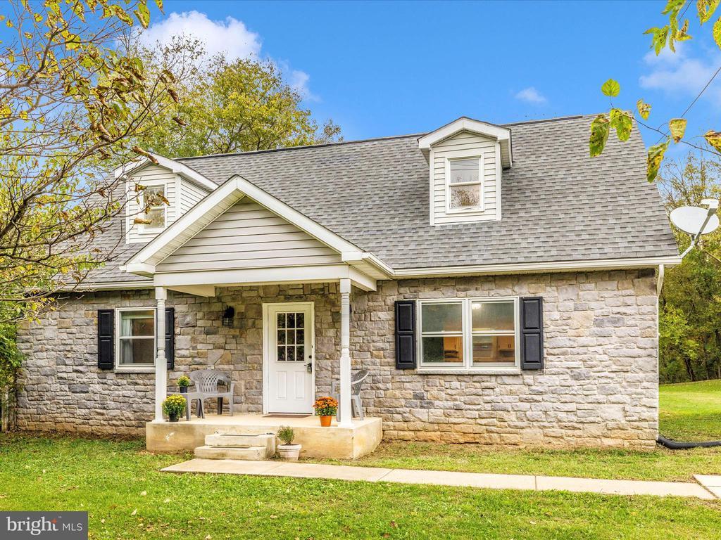 Welcome to this adorable cottage-style cape cod. Just minutes from Shepherdstown, you'll find plenty of paved parking, and a cute front porch. Inside you have one-level-living with kitchen, primary bedroom and full, updated bath (including oversized walk-in shower) along with washer and dryer all conveniently located on the main floor. The kitchen offers plenty of counter space, stainless steel appliances and a kitchen window over the sink looking out on your nearly one full acre! Upstairs, there are 2 spacious bedrooms and another full bath! The basement offers two finished rooms, a storage/utility room and another full bath. That's right! A full bath on every level! Your yard offers plenty of level ground for whatever you want to do with it. Fence it, add a pool, up to you! There are beautiful giant rock fomations you could include in a lovely rock garden.