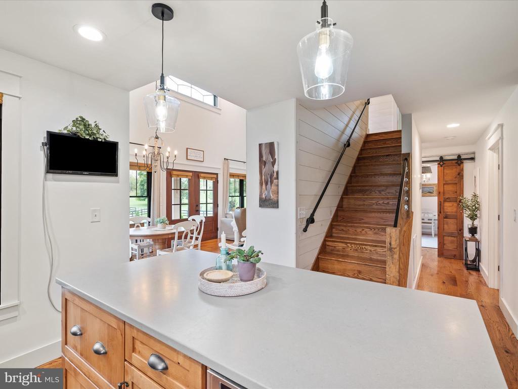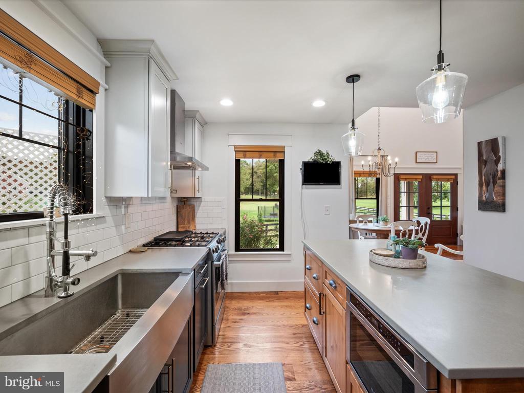 Nestled on 1.79 beautifully landscaped acres, this custom-built in 2018 Craftsman-style home blends timeless character with modern comforts. It Features 3 cozy & unique bedrooms with 6" Amish Milled Oak Floors, Ship Lap Walls, and Cozy Nooks to relax and enjoy.. This home has one of a kind, hand picked light fixtures, bath fixtures, cabinetry and more. The two full bathrooms are beautifully appointed with custom vanities, vessel sinks, Italian tiled floors, ship lap and all glass seamless walk-in showers. This Totally unique home welcomes you with warm wood accents, Beamed Ceilings, Barn Doors and handcrafted details throughout. The main level has an open floor plan. This level has walls of the best quality windows, soaring ceilings, and surprises you'll love, around every corner. The kitchen is complete with stainless steel appliances, including a gas top stove with an electric oven, custom quartz countertops, nice eat in island with open shelving on one side. beautiful hand picked custom soft closed cabinets, gleaming oak floors and more. There's a large great room that combines the living and dining space with 20" vaulted ceilings, large windows to let in the natural light and a lovely elevated half moon window, industrial railed balcony overlooking the family room and a contemporary fireplace built into a shiplap wall. The sunny laundry room off the kitchen has a large granite counter space for folding clothes along with additional shelving. The sunroom with italian tile flooring has access to the slate and stone patio and has a beamed ceiling and a shiplap accent wall. The main level bedroom also has access to the patio and a large walk in closets with very special built-ins that will house all of your wardrobe pieces. The main level full bath is spa-like with italian ceramic tiling, double vessel sink vanity and a glass walled - walk in shower w/ basket weave tile. The upper level has two more bedrooms, with the beautiful custom Amish flooring and the second scrumptious bathroom has a very unique and specially tiled shower, distressed looking large mirror and alcove for linens and other storage. The 4' Crawl Space is Conditioned, ( Heatyed and Cooled) and has a small and large Water Softener that shares one Brine Tank. The High End Heil HVAC System is Multi Stage and The Heating is 18.5 Seer and the Cooling is 12.5 Seer. The well is Amazing at 60 Gallons Per Minute. It has a UV Light. Everything about this 1.79 totally board fenced property has been well planned and thoughtfully orchestrated. The front porch has mountain views in the distance and pastoral views overlooking the countryside. It is positioned graciously off of the great room for an opportunity to relax, entertain, and watch the world go by. In the backyard, a stone patio surrounds a serene "spool" - a spa-like whirlpoolwith a cascading waterfall, which offers a private oasis for unwinding or hosting guests. Equestrian enthusiasts or hobby farmers will love the 3-stall barn with tack room that has a a large paddock. Car lovers, mechanics, artists, woodworkers, Man Caver's and She Sheder's, will appreciate both the attached fully finished 2-car garage with a speckled epoxy floor and the separate 28x30 2-car detached garage that has been insulated and has a standing seam metal roof with snowbirds. The entire property is fully 3 board fenced, providing privacy and security. There is even a large fenced yard for your pets and small children. It would also make a great garden area. With easy access to RT 340, RT 9, RT 7, Hollywood Casino, Summit Point Race Track, Berryville Va., Charles Town WV and Loudoun County for commuter's, all of your location requirements will be covered here. There is nothing about this home that is typical in any way. If you've had the cookie cutters and are looking for a totally unique home, this one's for you.