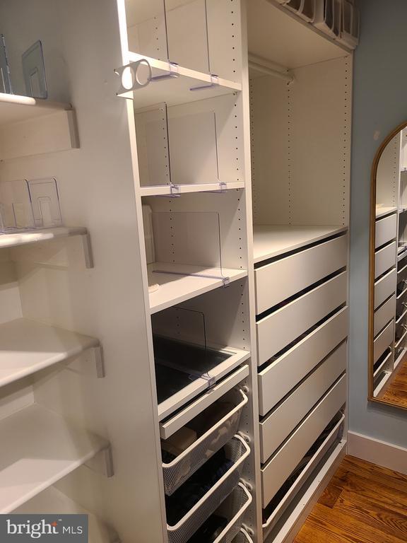 Attic, Bathroom - Walk-In Shower, Built-Ins, Entry Lvl BR, Exposed Beams, Pantry, Recessed Lighting, Upgraded Countertops, Walk-in Closet(s), Water Treat System, Shades/Blinds, Wood Floors