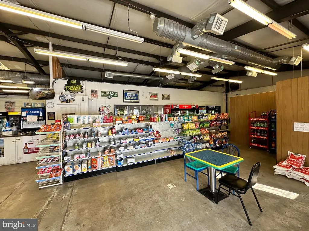 WELL-ESTABLISHED “TURN KEY” CONVENIENCE STORE W BUILT-IN DRIVE THRU. 100% MAINTENANCE FREE METAL EXTERIOR. PAVED PARKING WITH AMPLE SPACE. FULL PERIMETER VINYL FENCING. HUGE (CONCRETE LINED) WALK-IN COOLER. PRIVATE VIDEO-POKER ROOM. HIS & HER BATHS. 3 PHASE ELECTRIC. LONG ROAD FRONTAGE AND EXPOSURE. ALL EQUIPMENT AND INVENTORY CONVEY. (2) BUILT-IN GARAGE DOORS FOR AUTO BUSINESS. POSSIBILITIES ARE ENDLESS! MOTIVATED SELLER.