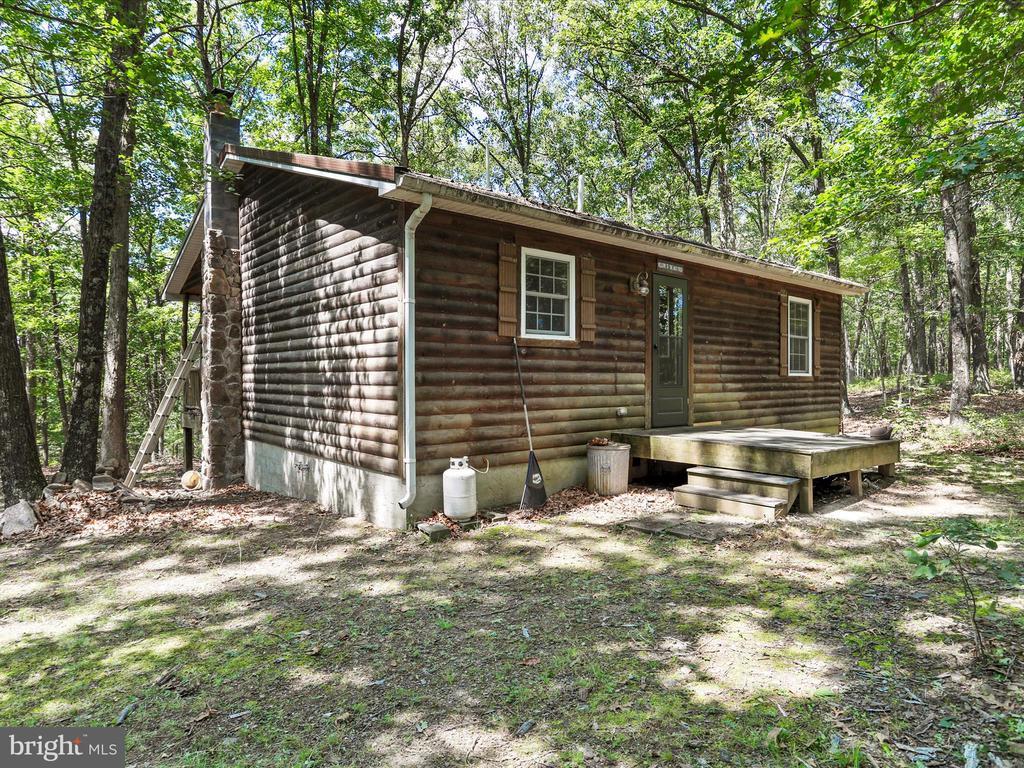 Here is your chance to own that private off grid living deep in the woods or hunting camp for you and your friends with plenty of Deer, Bear and Turkeys to keep you entertained. Nestled in a serene wooded setting, this charming cabin-style home with covered front porch invites you to experience the warmth and comfort of rustic living. With its log siding and stick-built construction, this residence exudes a cozy, lodge-like ambiance that feels like a retreat from the everyday hustle and bustle. Step inside to discover a space that is perfect for relaxation and gatherings. The inviting wood flooring flows throughout. Elegant kitchen with gas stove. A delightful fireplace serves as the heart of the home, offering a perfect spot to unwind with a good book or enjoy intimate conversations on chilly evenings. Don't miss out on this opportunity to make this cabin your own! Couple things to note, there is no water source or electric run to the house but there is a working septic field. The second bedroom still needs the wood ceiling trim finished. More/better pictures to come. Please do not attempt a drive by as the gate to the road is locked and requires an agent to be present.